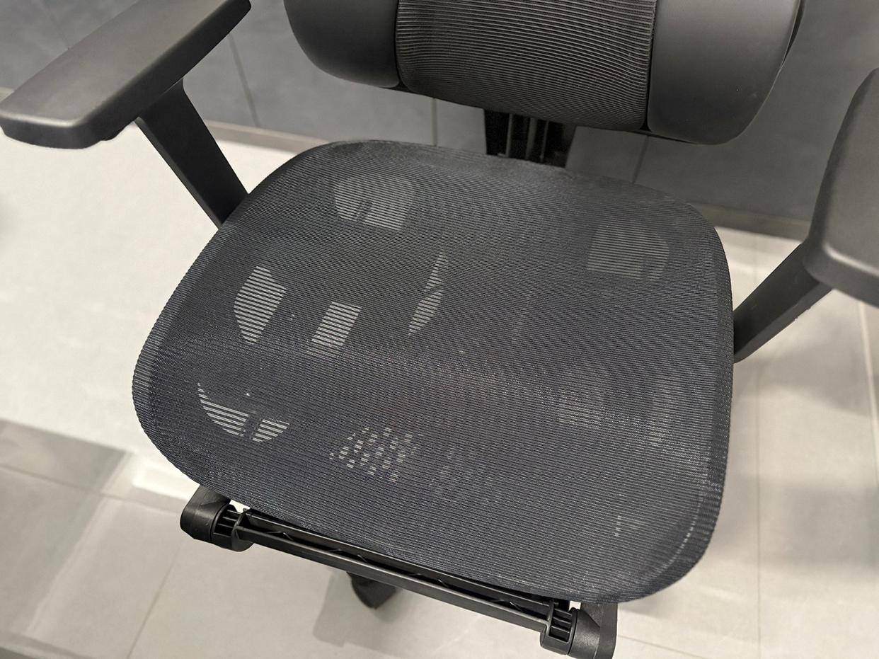 在动态舒适性上,约140°大角度后仰配合自适应重力底盘,能轻松切换至放松状态。但需注意,底盘后仰阻力偏轻且不可手动调节,频繁后仰或体重较大的用户可能会觉得支撑感稍弱;同时,其最小坐深偏大,可能不太适合身高较矮或腿长较短的用户。