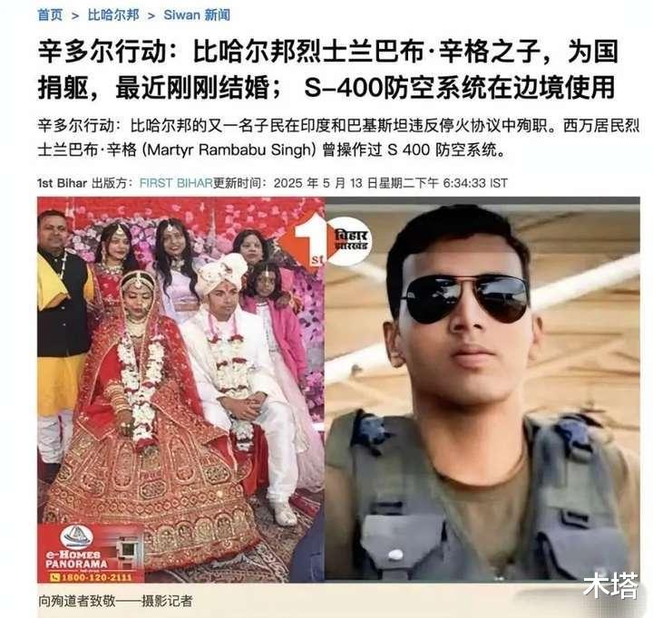 这一轮冲突中,印度不仅在军事上遭遇了挫败,还在社会和民众情绪上陷入了困境。5月14日,来自比哈尔邦的媒体报道了一则令人心痛的消息:年仅23岁的印度士兵兰巴布·辛格在这次冲突中殉职。辛格是一名S-400防空系统操作员,刚刚与妻子结婚。更加令人痛心的是,这一不幸消息并未第一时间通知到其家人,直到两天后,家人才接到阵亡的电话。