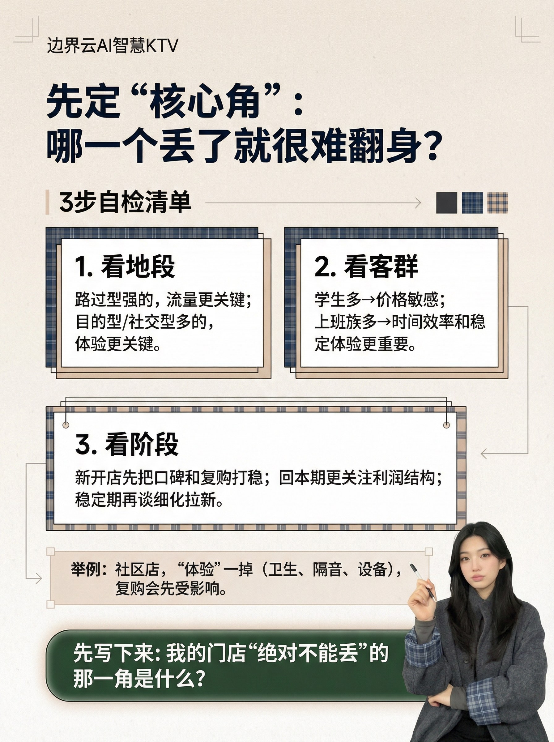 三、先摸清你的店,哪个角最不能丢?不是所有KTV的死穴都一样。有的店流量一掉就完,有的店体验一崩就散。先给自己的店把把脉: