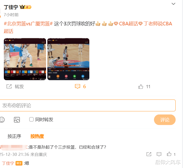 先来说说孙铭徽的这一记造三分犯规,裁判专家丁佳宁认为,这个判罚没有问题,一来张才仁确实是犯规,二来孙铭徽在张才仁撞到他之前就完成了合球,这是一个连贯的投篮动作,虽然在中场就出手投三分显得有些夸张,但孙铭徽也是预判到位了才敢这么做,合理利用规则。