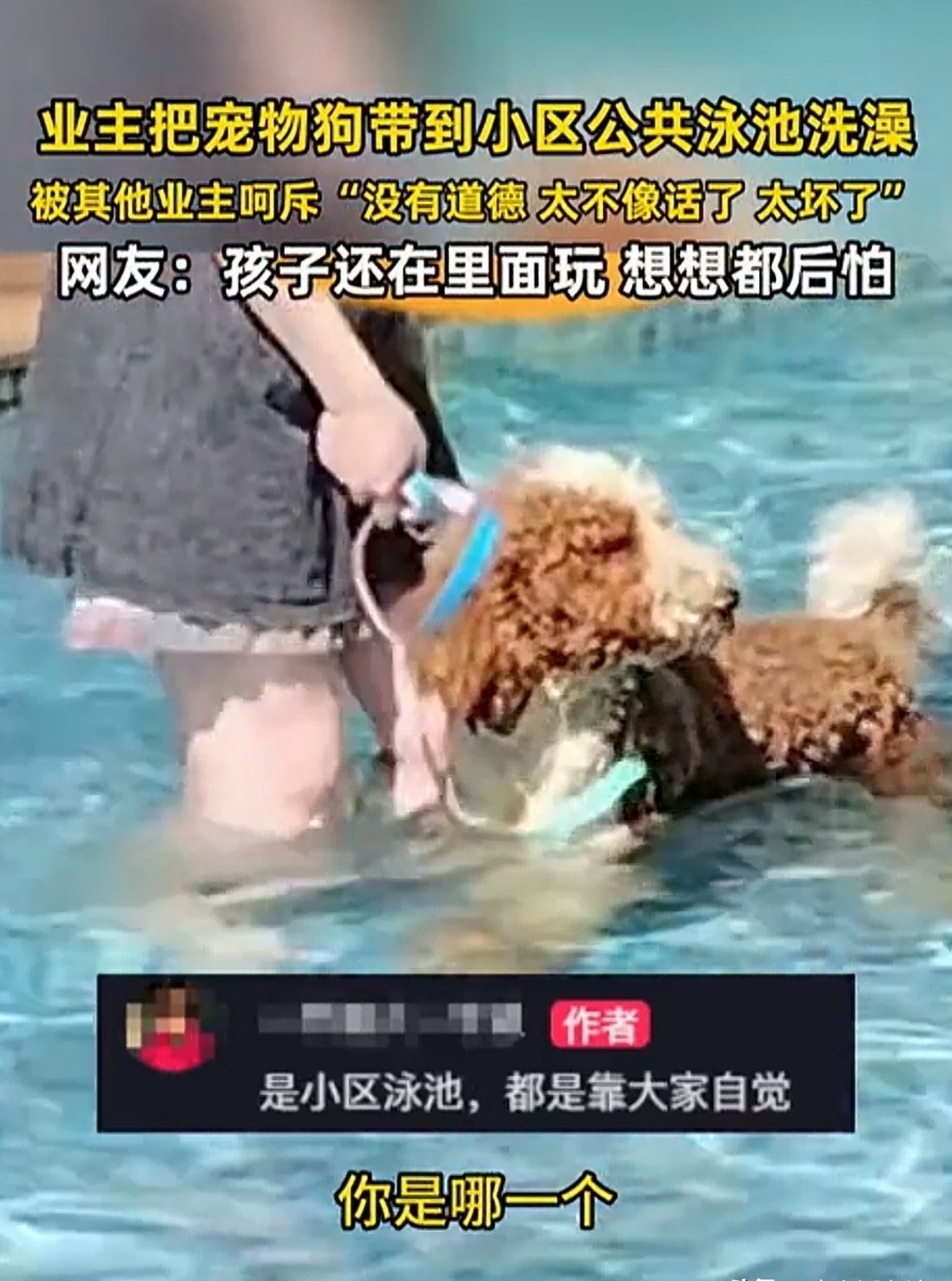 有人说她就是爱狗心切。可爱狗和守规矩从来就不矛盾。我家隔壁养了只柯基,每周去店里洗澡,打疫苗做驱虫,遛狗永远牵绳,拉完屎立马捡。这些事不难,也不贵,就是愿不愿意做。把狗往泳池里一按,图的是省事,可省下的几十块钱,转头变成别人多交的水费、孩子过敏去医院的钱、物业加班费——这账,不该大家帮她算。