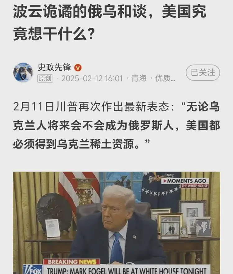 尽管特朗普看似对乌克兰抛出了“5,000亿美元稀土换和平”计划,尽管俄乌问题特使基斯.凯洛格一直肯定“实力换和平”计划,但在一个道德缺失、朝令夕改的政客手里一切都不过是舞台道具而已。
