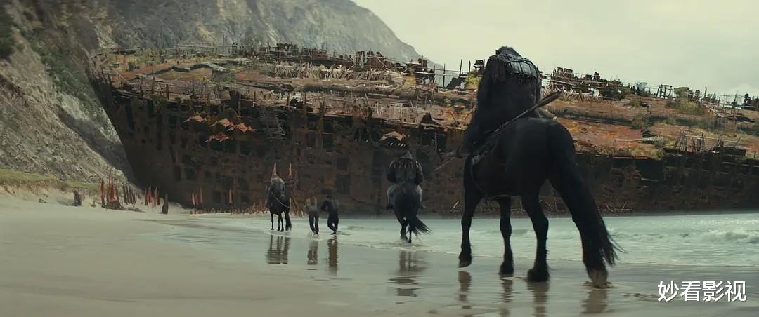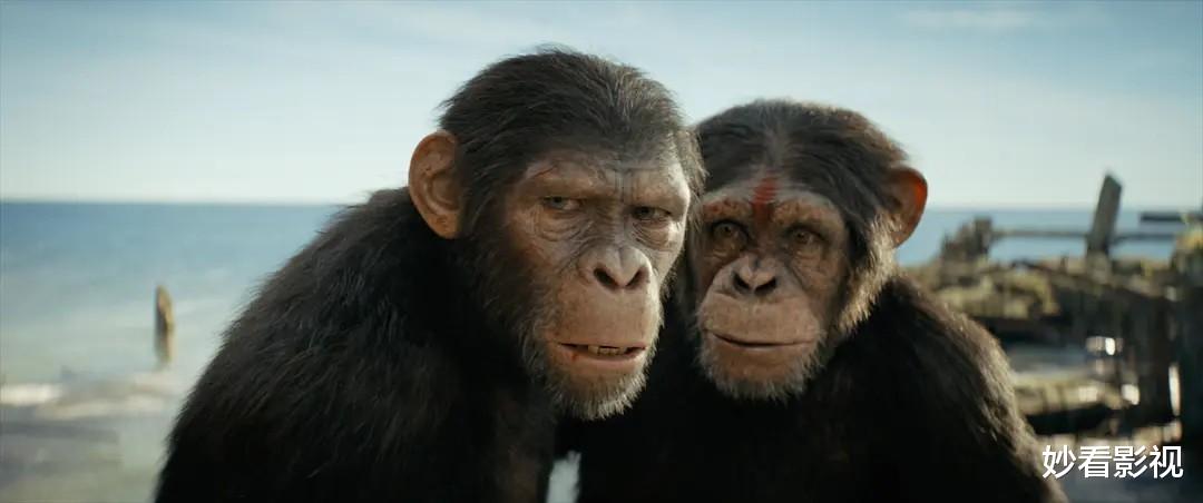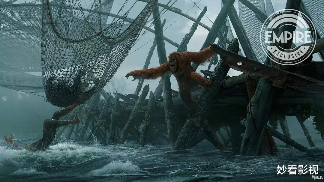 动作捕捉技术也在不断精进,大家能清晰看见诺亚眼中闪烁的天真、愤怒、迷茫、坚定,捕捉到普罗克西姆肌肉绷紧时的暴戾。猿群在巨轮旁与海水搏斗时,水花飞溅、毛发交织,几乎让人忘记这一切都是特效创造。