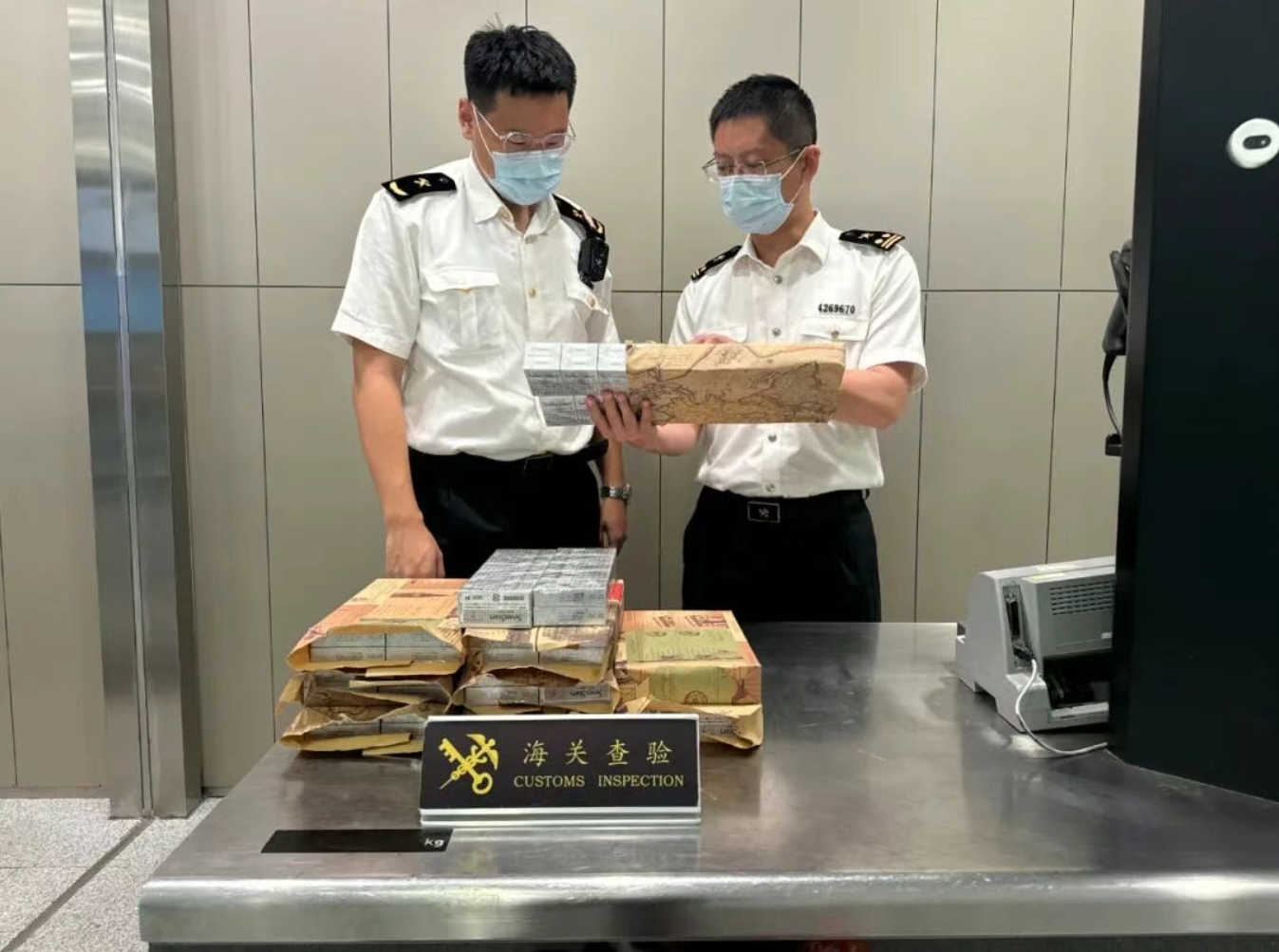 近日,青岛海关查获一起旅客走私卷烟进境案。