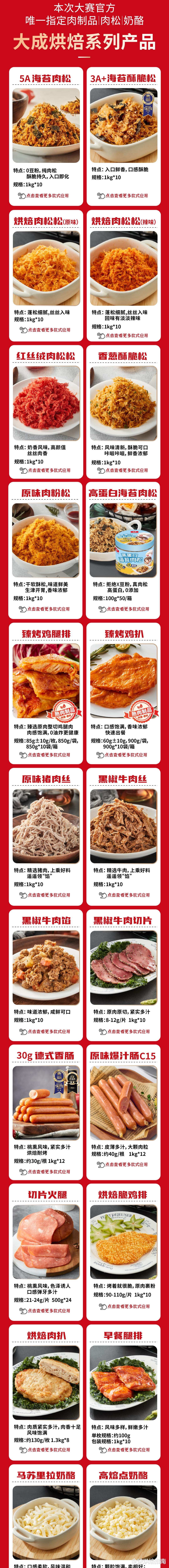 在过去15年中,大成食品全面覆盖烘焙行业的九大系列,近400个SKU,包括香肠、火腿、培根、蒸烤原肉、肉排、肉饼、馅料、奶酪和肉松等,有力推动了烘焙行业的创新与发展。2024年9月,大成新智能化肉松工厂投产,年产能4000吨,立志成行业标杆。最后对选手表示衷心的祝愿,希望大家都能赛出好成绩!