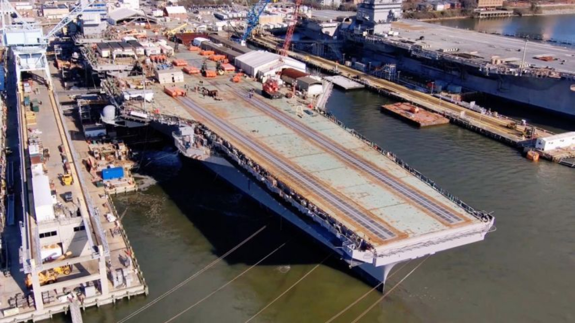 并且为了赶进度,让福特级航母的四号舰——多里斯·米勒号的建造进度不会落后太多,美国在2024年11月的时候将企业号的中体船体转移到了船坞的西端,并开始了在船坞的东端建造多里斯·米勒号。