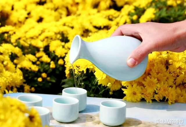 “酒”与“久”谐音,重阳节喝菊花酒,寓意着祛灾祈福,寓意着健康长寿和吉祥如意