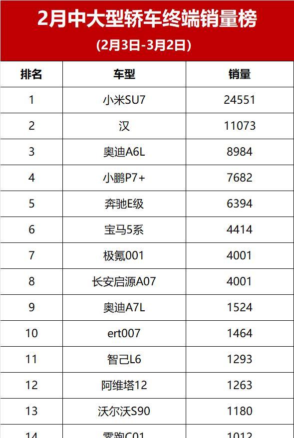 2025年,我们见证了汽车市场一个重要的转折点:新能源汽车不再是“未来趋势”,而是实实在在地成为了市场的主流。小米,一个在手机行业叱咤风云的品牌,跨界造车,其首款SUV车型SU7,竟然在2月中大型轿车销量排行榜上拔得头筹,力压一众老牌豪强。这究竟是昙花一现的营销奇迹,还是新能源时代真正来临的标志?这引发了业内外的广泛讨论。有人说,小米的成功在于精准把握了年轻消费者的需求,智能化和科技感才是未来汽车的王道;也有人认为,传统豪华品牌深厚的底蕴和技术积累不容小觑,小米的领先只是暂时的。这场争论背后,反映的是汽车行业正在经历的深刻变革,也预示着未来市场竞争格局的巨大变化。