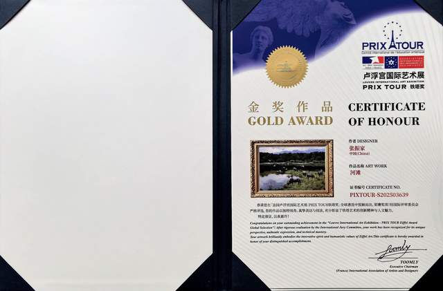 《河滩》以其独特的视觉语言,将皖南水乡的润泽气息与时光沉淀的静谧感,通过油彩的层层肌理生动呈现。画面中,斑驳的船影、潋滟的水光与质朴的滩涂交织,既蕴含中国水墨“计白当黑”的悠远意境,又展现出西方油画对光色与空间的精妙掌控。评委会在授奖词中特别指出,该作品“以非凡的融合之力,在帆布上搭建起一座连接东西方审美的心灵桥梁,其深沉的情感与精湛的技艺令人过目难忘”。此殊荣的获得,标志着张振家先生的艺术创作已进入国际顶尖视野。这并非他首次闪耀于世界舞台——早在两年前的“中加国际绘画艺术展”上,其作品已斩获重要奖项;2024年,更获美国道格拉斯大学授予特聘教授职位,彰显其艺术与学术影响力的同步提升。此次卢浮宫折桂,可谓其艺术国际化征程中一座新的里程碑。