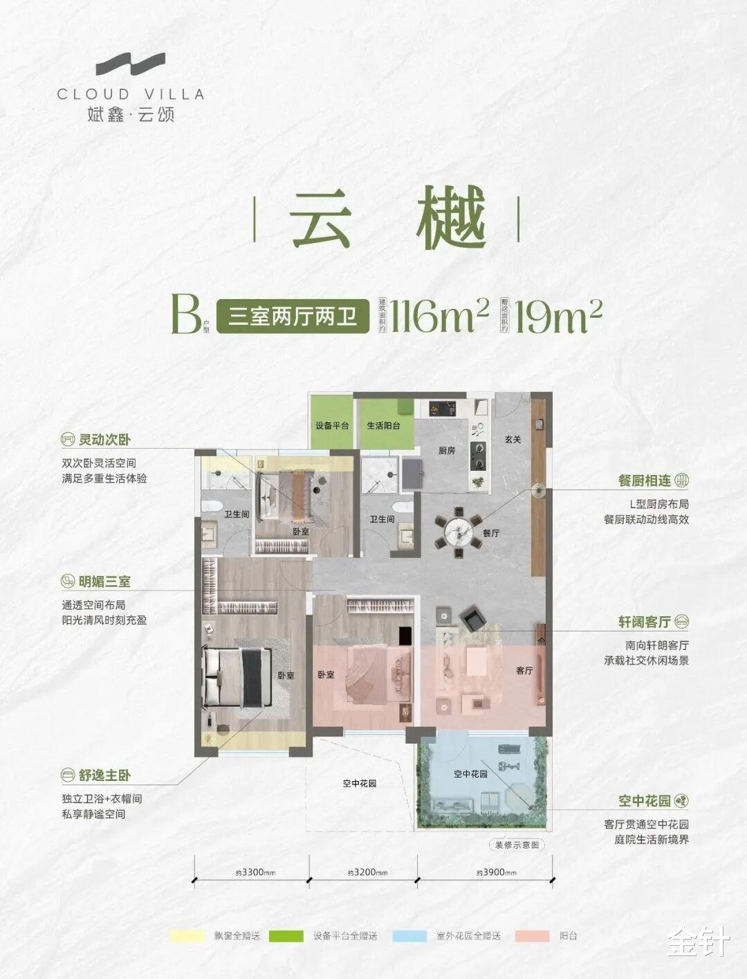 刚需客群可按居住需要划分,即便是最小的116㎡户型,也可选独立三房,或将三房变为一个通透的两房大横厅,要知道,这是市场上大多项目面积在140㎡以上,才能打造的空间越级。