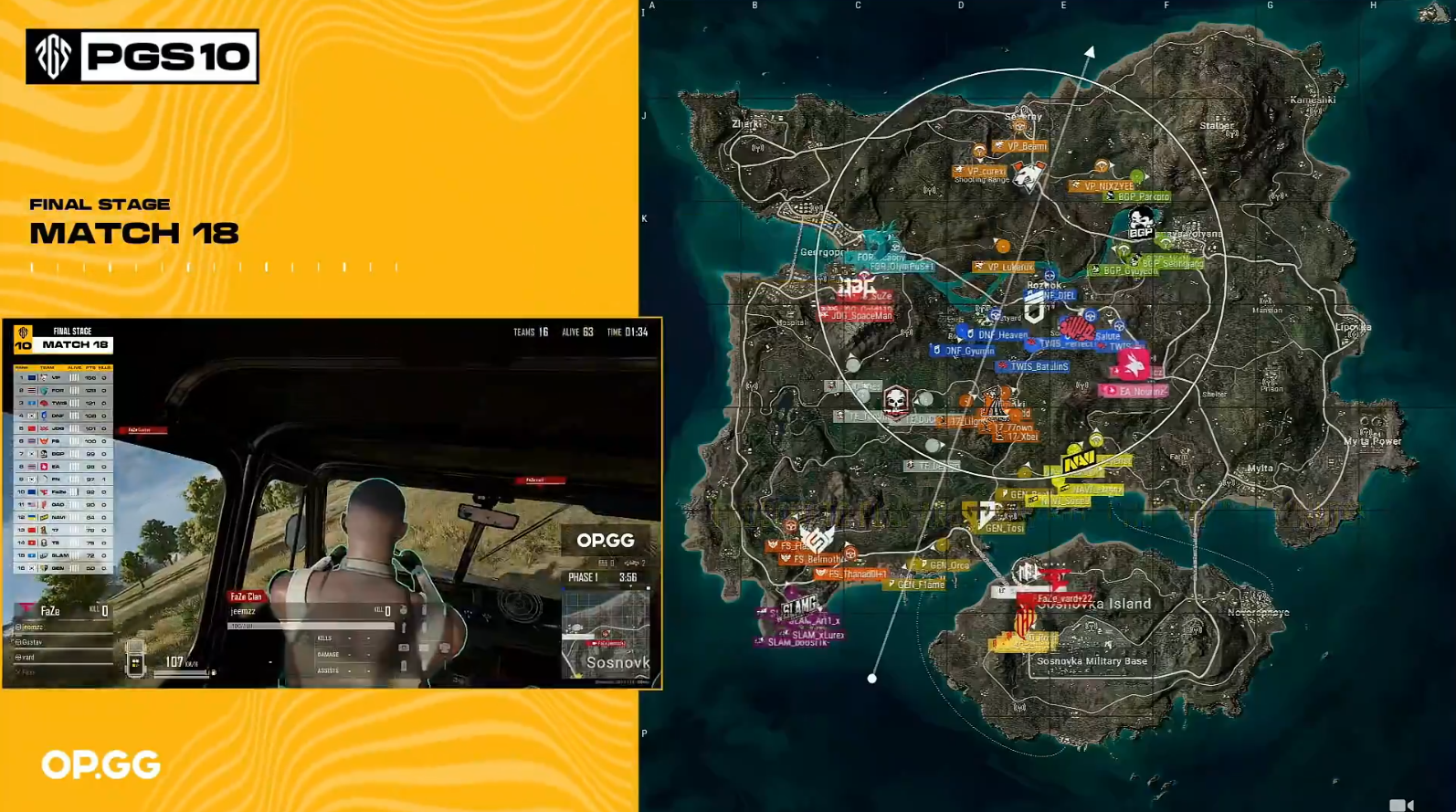 决赛最后一场又给了个阴阳圈,Faze在桥上直接被FN做掉早早下班,JDG和SLAM在蓝圈里打了很久只换到两分,这样别说冲前四了,能不能保前八都难说了。阶段4圈形刷新,BGP分踩的加油站就在中心的,这让他们连上两把大分就很难受,SLAM再度发力打掉FOR,这给了TWIS反超的机会,VP的C4滑车没能爆掉FS,17在旁边还抢下了一些分数,阶段6圈形刷新,这Beami又泡在蓝圈里了。