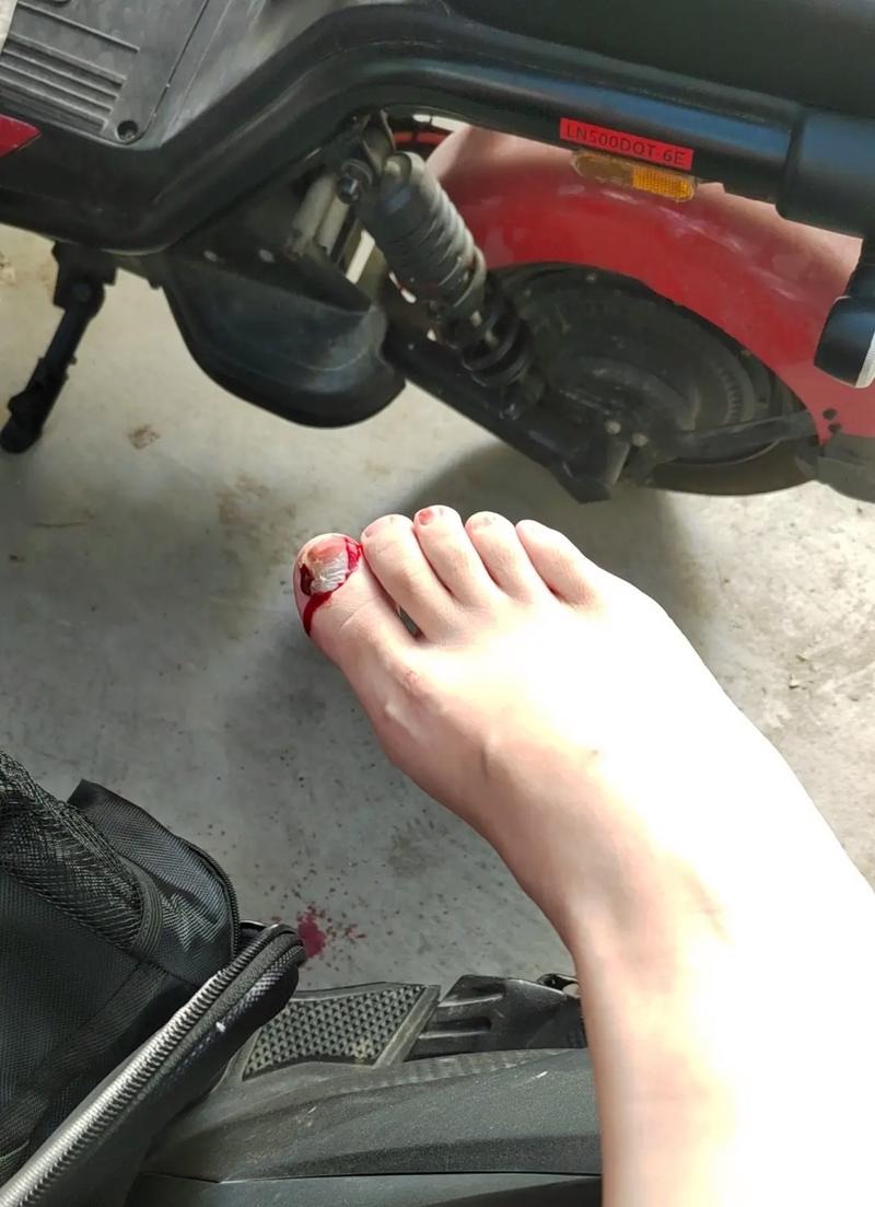 ②.存在危险:在电动自行车行驶过程中,脚蹬子会随着车轮转动而转动,如果稍不留意,就有可能打伤脚面。夏季女性穿的连衣裙如果不注意有可能会被旋转的脚蹬子卷到,如果操作失误车辆可能会侧翻,造成驾乘人员受伤。电动自行车可以合法载一名12周岁以下的儿童,如果坐在后座的儿童不注意,脚面也有可能会被旋转的脚蹬子打伤。