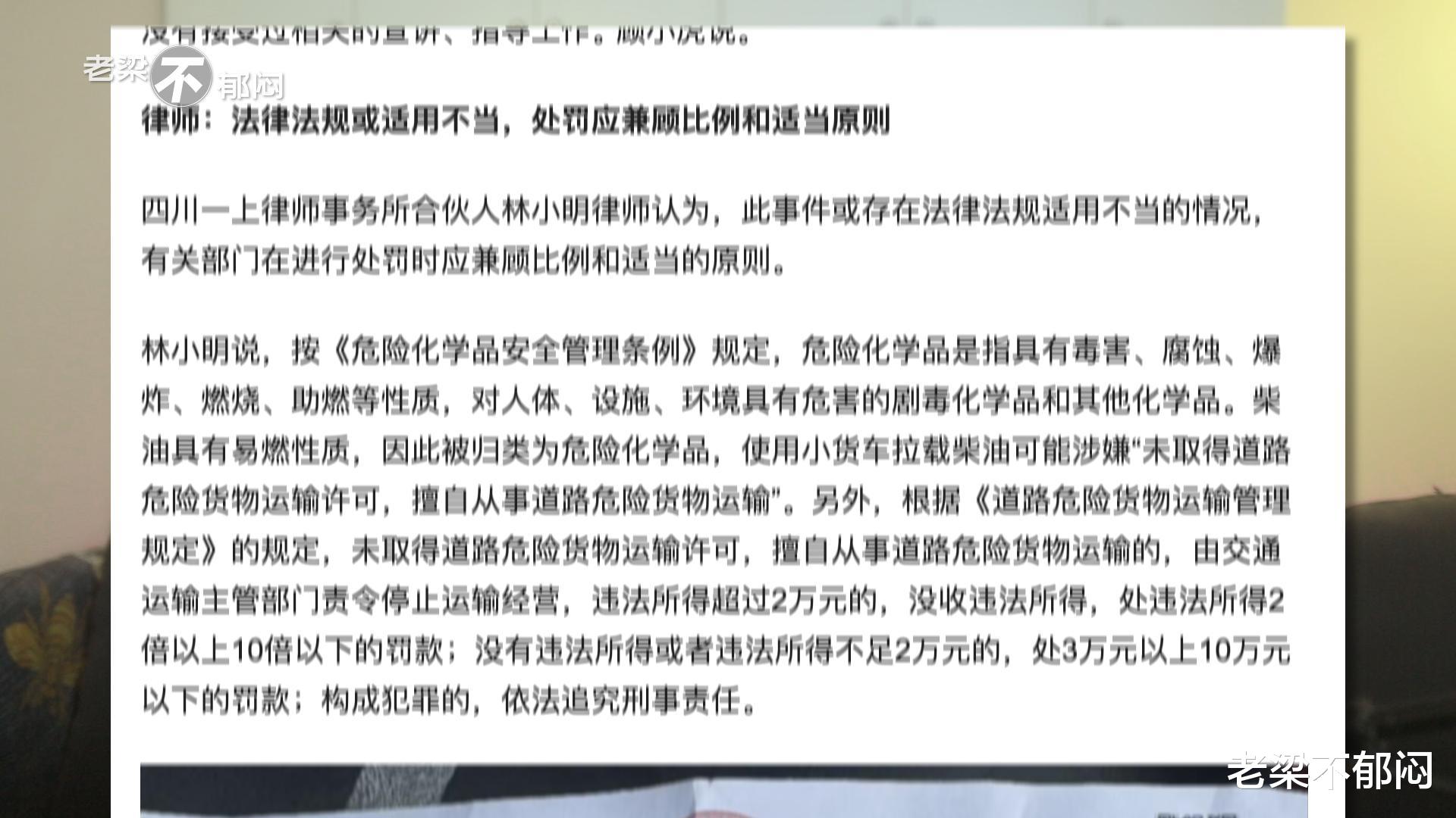 我看了一下这个报道非常有趣,就是很多人看完这个报道的理解就是一个农民家里自用的农机没油了,买了少量的油来自用,觉得这你都要罚款,太不人性化了。