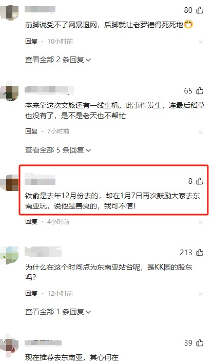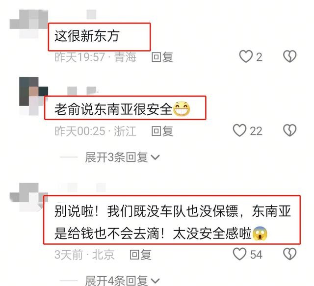 还有网友冷嘲热讽:“东南亚就这么安全?你去的时候带着团队护航,普通人过去怎么办?你是不是在帮东南亚洗白?”