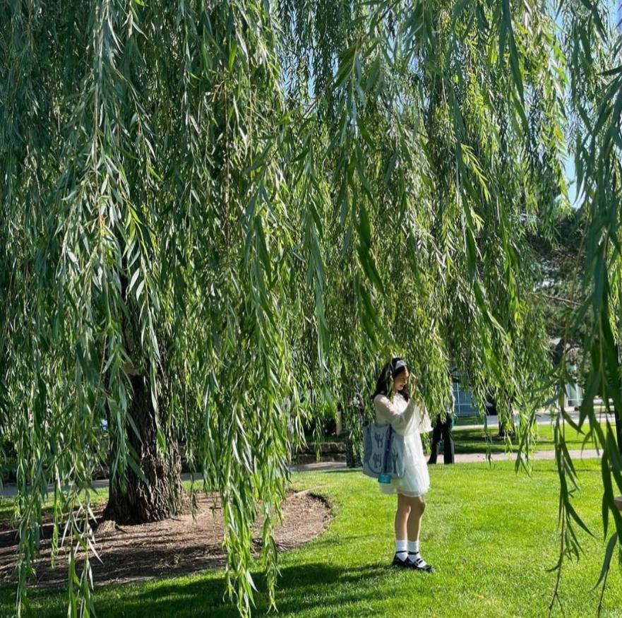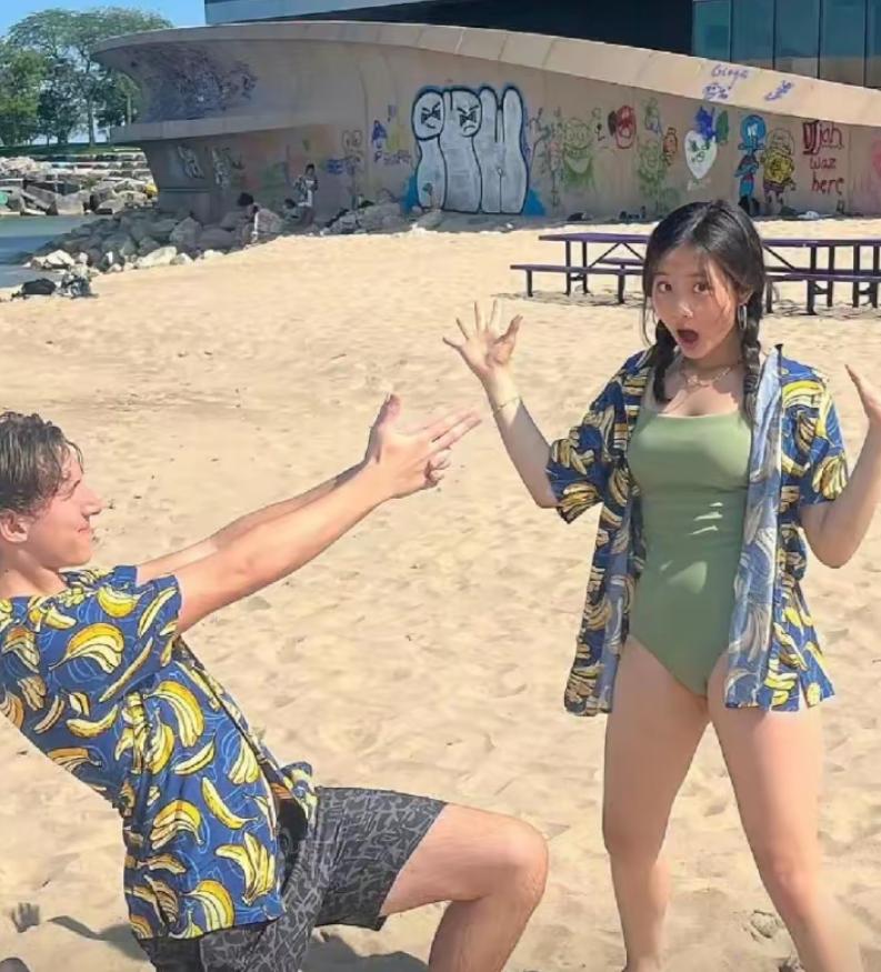黄多多素颜穿白纱裙,和男同学保持距离