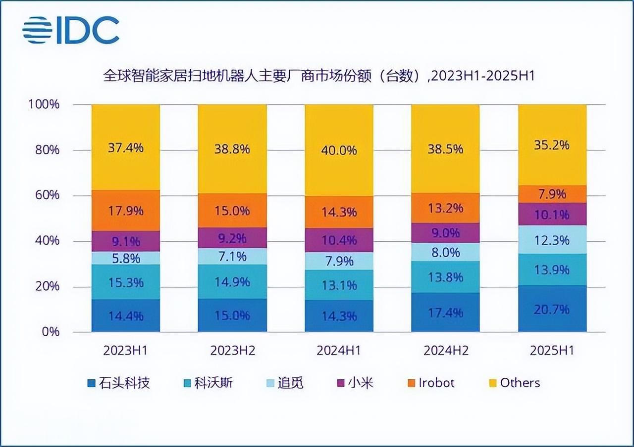 中国品牌“卷”出全球竞争力目前全球扫地机器人市场,中国四大品牌——石头、科沃斯、追觅、小米——合计拿下了55%的份额。而所有中国品牌加起来,市场占有率超过70%。换句话说,全球每10台扫地机器人中,有7台来自中国。