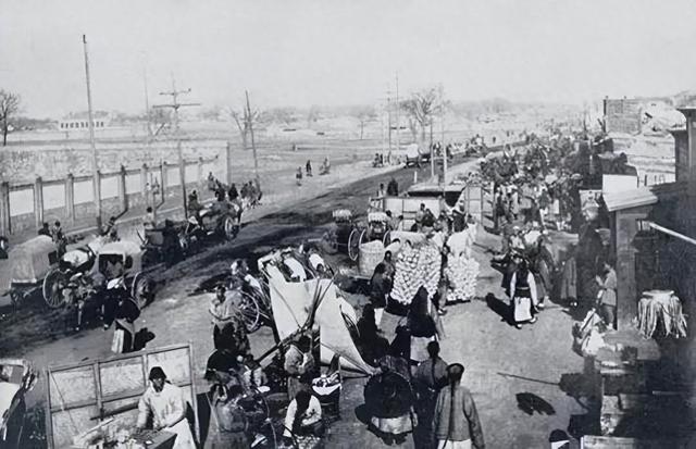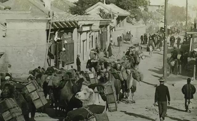 清末东交民巷骆驼运输队,这里可以看到外国列强的身影。