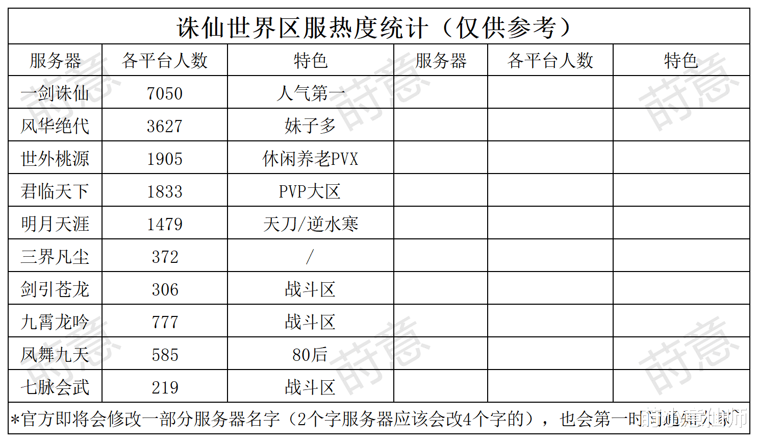表格统计的是截至9号22点贴吧、公众号、DY、直播间、B站各平台数据之和,总共22700位玩家参与投票,可能会有小部分重复投票,仅供参考!官方表示会收集建议修改部分服务器名字!