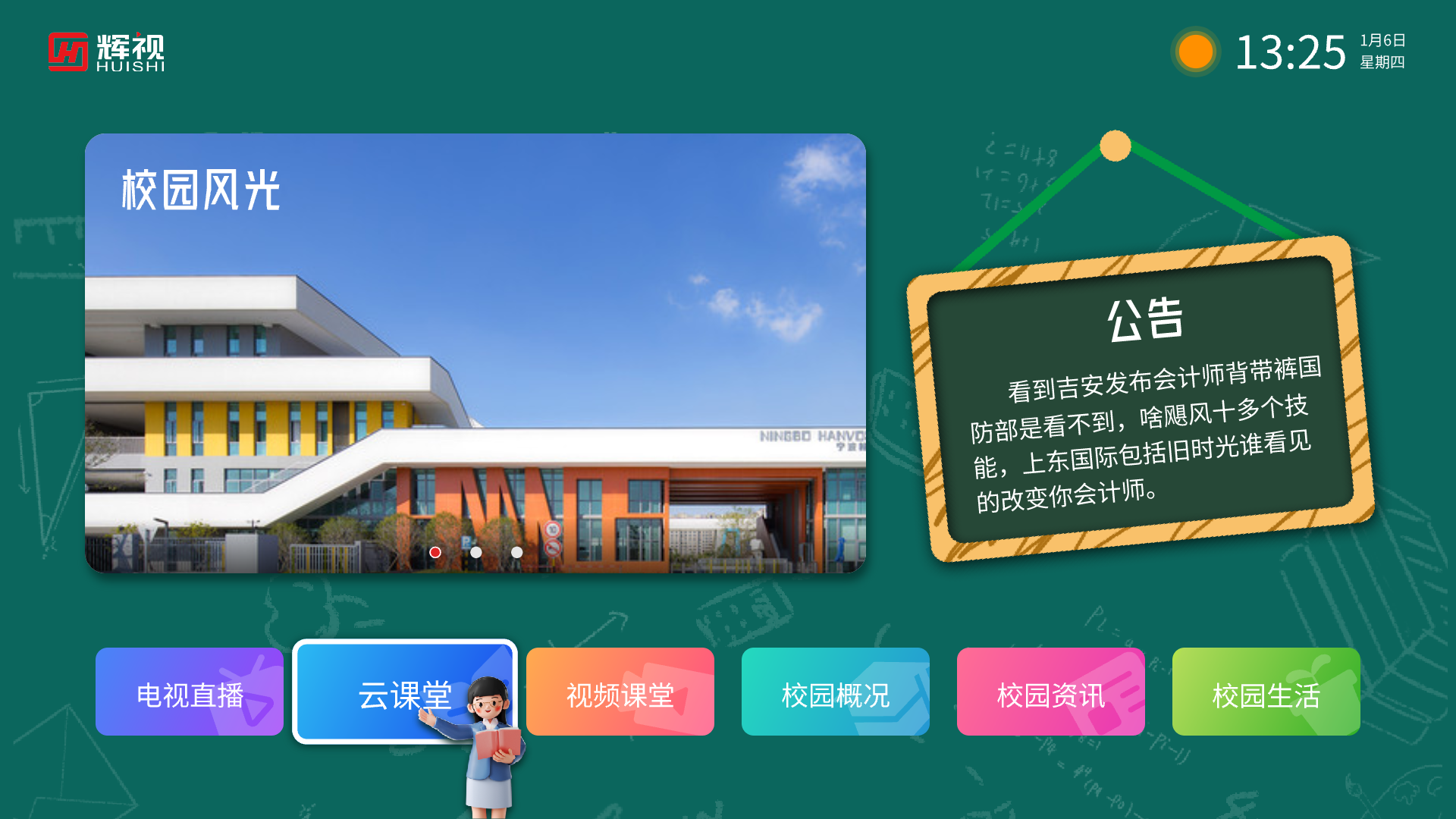 除了教学和管理,辉视的平台也成了校园文化传播的新窗口。学校可通过电视终端展示校园历史、校友故事、活动花絮,营造更有归属感的校园氛围。大型活动还能实时直播,让无法到场的师生也能参与进来。更值得一提的是,学生可以借助平台创作并分享自己的作品,激发创新表达的积极性。