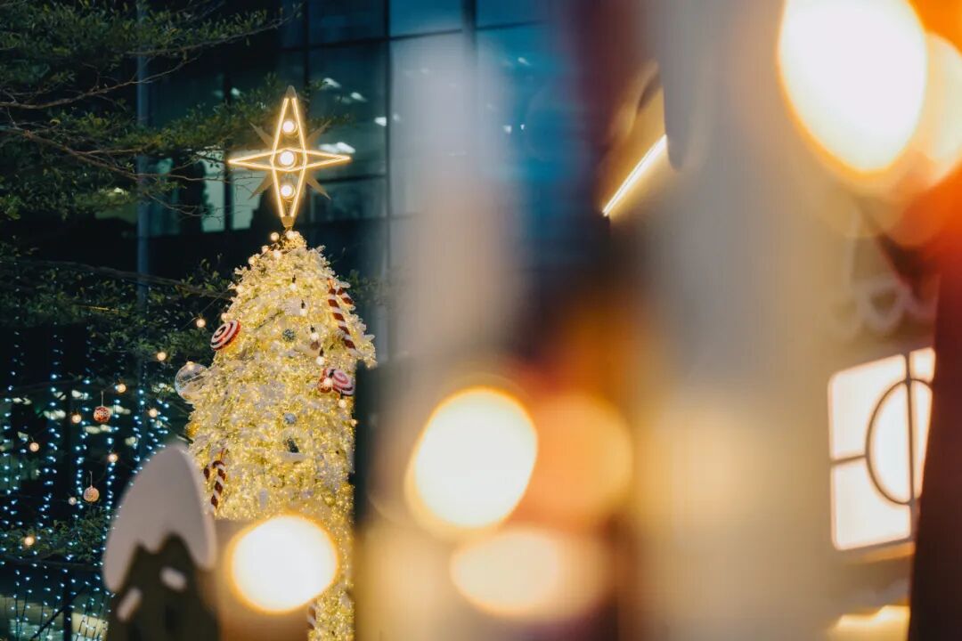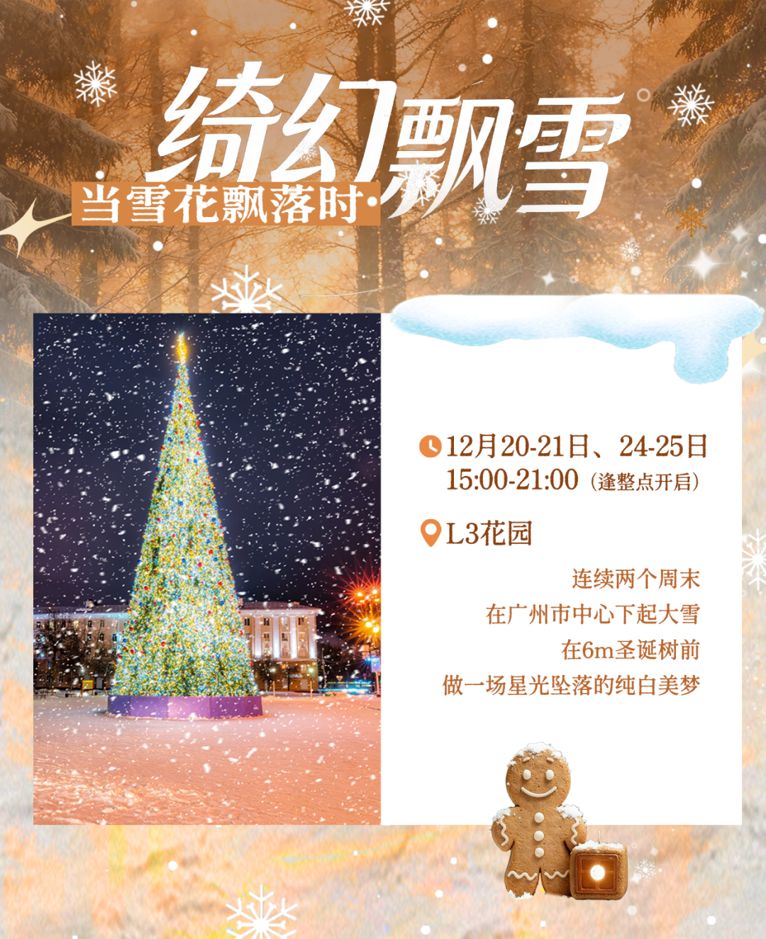 6m的圣诞树坠满雪花与姜饼人小屋,为这场缤纷童话更增添了一份浪漫气息。