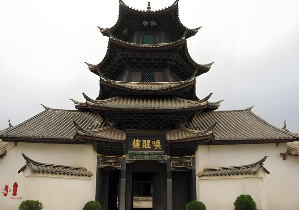 当然,前门的唤醒楼,无疑是拖姑清真寺建筑中的神来之笔。它作为主寺阿訇召唤信众前来礼拜的标志性建筑,承载着深厚的宗教意义。步入唤醒楼,映入眼帘的是一根根粗壮的大圆木柱,它们稳稳地挑起层层梁椽。乍看之下,这些木柱仿佛直·通楼顶,然而仔细观察便会发现并非如此。这座楼共有五层,木柱的数量层层递减,颇具匠心。第一层和第二层各有二十八根木柱,第三层和第四层各有十根,而到了第五层则仅有六根。这些圆柱与横梁巧妙地交错连接,构成了下为矩形、上为六方形的精巧骨架,坚实而稳固地支撑起整个建筑的重量。再辅以木叠斗拱,进一步增强了建筑的稳定性。