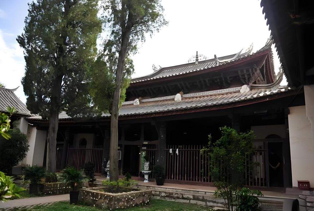 在唤醒楼的第二层,面向大殿一侧的檐下,悬挂着一块古朴而庄重的巨匾。匾上,“普慈万有”四个行草大字气势磅礴,此匾乃是清乾隆十一年,由昭通镇总兵世袭骑都尉冶大雄所书赠。然而,在拖姑清真寺中,进行礼拜的大殿采用的是两重檐歇山式的独特结构。大殿内有两根特大的“抬担”横架在殿堂的上方,构成了独特的凸字形结构,而在水平面上,口字形的横木巧妙地连接着四边的木柱,将整个殿堂的各个部分紧密地拉连为一体。大殿内部空间宽敞,足以容纳几百人同时进行礼拜。抬头仰望,殿内正上方悬挂着一块横匾,上面书写着“快乐天堂”四字,而两侧的墙壁上,八个直径达四米的大圆佛经均用阿拉伯文字书写,散发着浓厚的宗教气息。