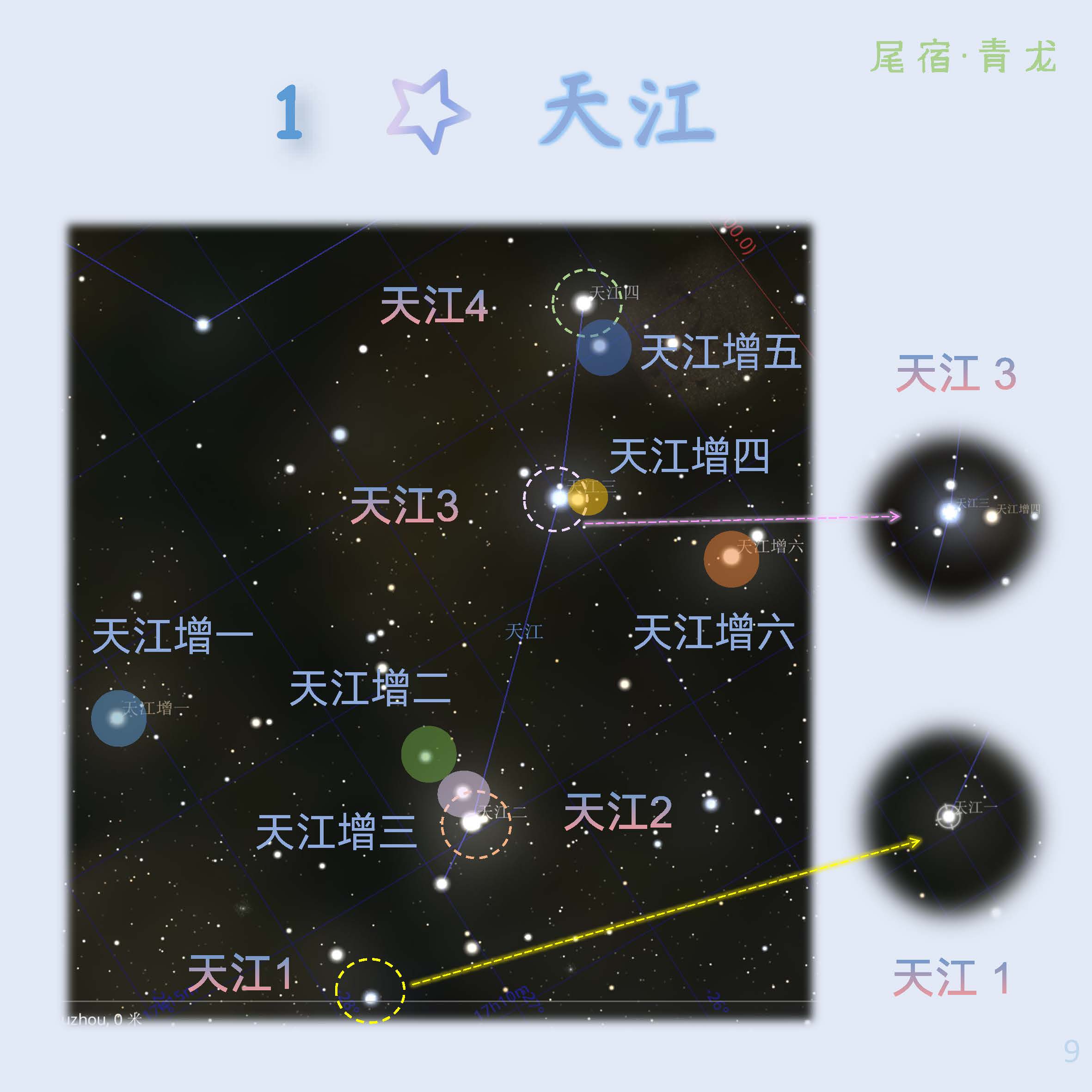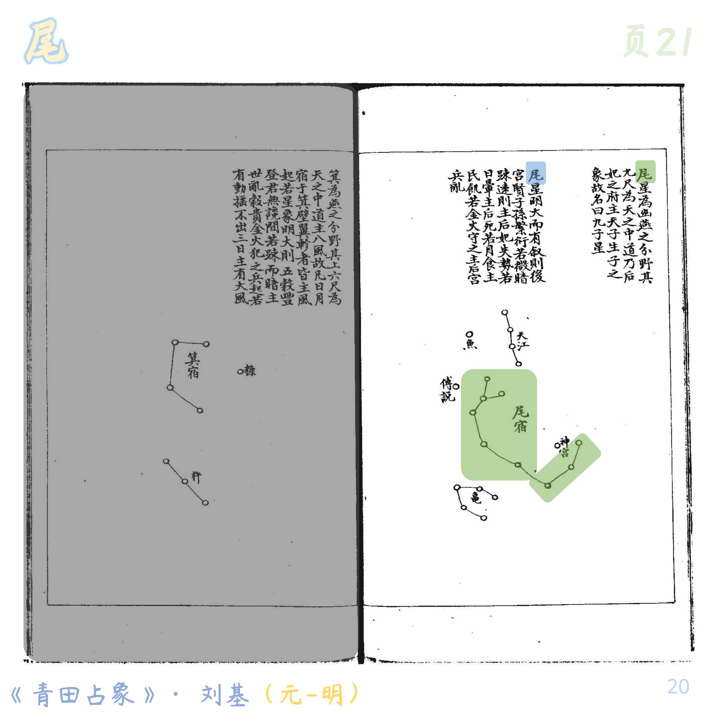 尾宿代表龙尾,有5星组,共21星,为青龙第六宿。