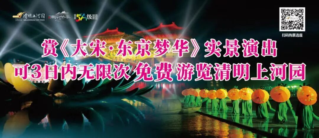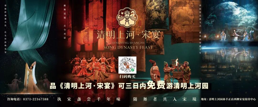 品《清明上河·宋宴》沉浸餐秀,也可三日免费游览清明上河园,包含用餐当日门票及后续两天门票。