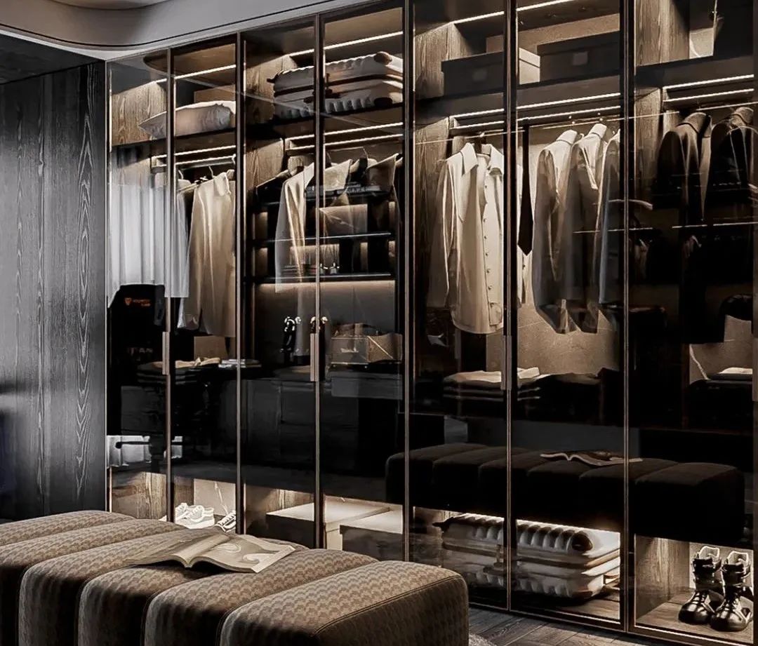 磨砂玻璃/木质柜门:兼顾美观与隐私;