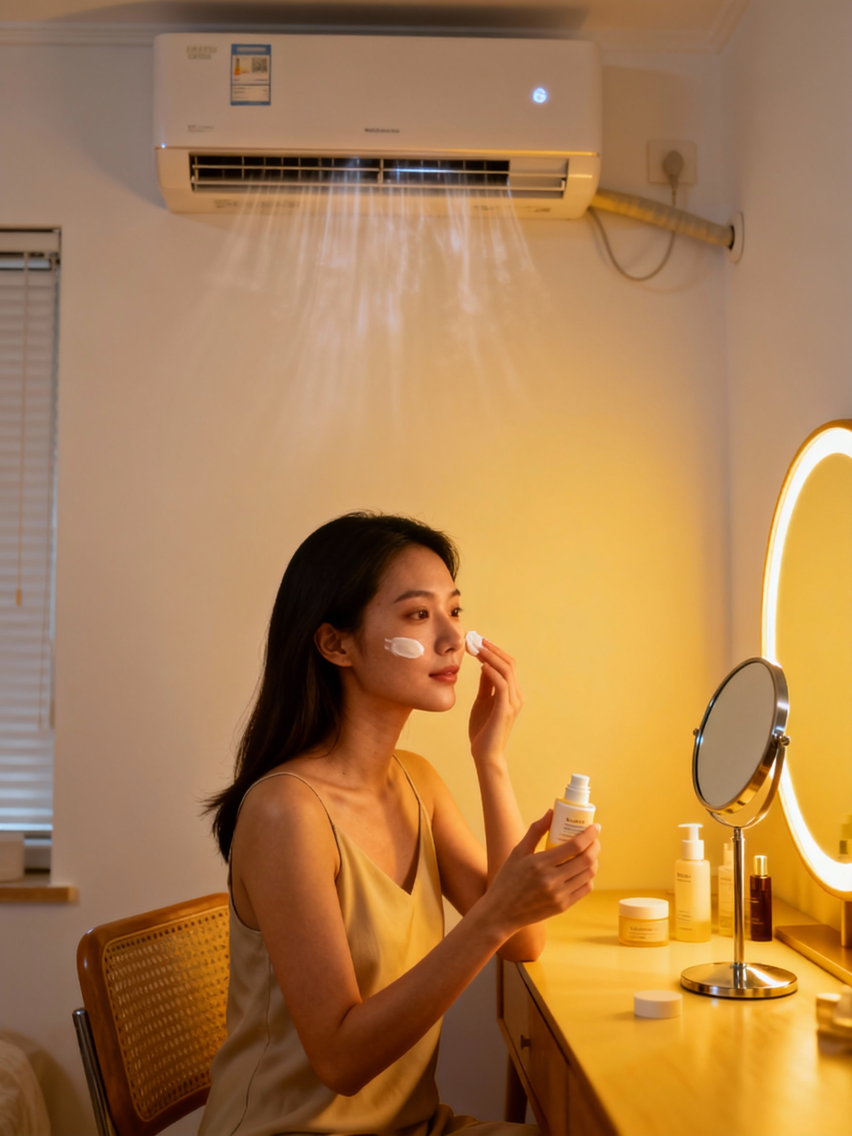 空调房内空气干燥,肌肤水分极易流失,护肤需格外用心。在空调房里,不妨备上一台加湿器,让室内湿度维持在适宜范围,从根源上缓解干燥状况。同时,搭配含玻尿酸成分的喷雾,玻尿酸具有强大的锁水保湿能力,能迅速为肌肤补充水分。将其放在手边,感觉肌肤干燥紧绷时,随时喷一喷,轻拍至吸收,让肌肤时刻保持水润。如此一来,能有效避免因干燥而产生的干纹,让肌肤在空调房里也能维持水嫩、光滑的好状态。