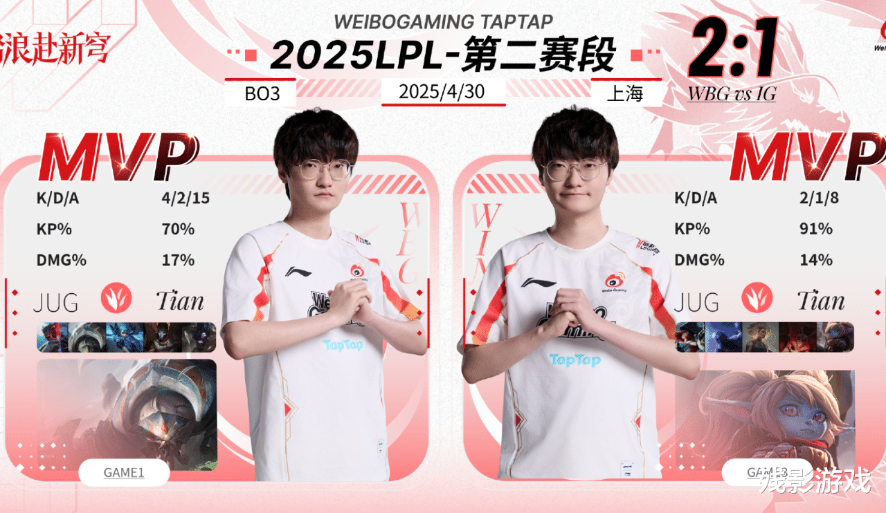 IG与WBG对阵的第一局比赛中,新人辅助Erha(二哈)在先锋团先手开团,顶回了IG打野杰杰的猪妹,先斩IG打野后,WBG顺势收下峡谷先锋,并且打出0换4的佳绩。自此,WBG开始滚雪球,以1W经济差的优势轻松平推IG高地,小天蝎子更是控到Gala,带领队友一波致胜。第二局比赛,IG在rookie先行倒地的情况下,Theshy的奥恩站了出来,大招一段命中3人,二段击飞撞起2人,帮助队友团战致胜。