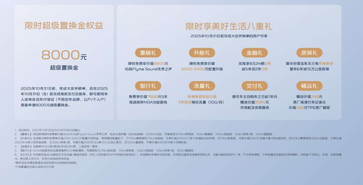 价格政策展现诚意:8.18万元起的限时指导价,叠加免费升舱、三电终身质保等权益,购车即享价值超3万元的礼包。对比15万级合资车型,银河A7用60L油箱实现2100km+综合续航,37kW快充18分钟补能50%的配置,重新定义家轿性价比标准。