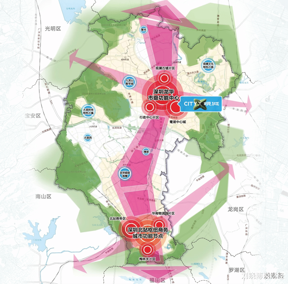 在此背景下,鸿荣源观城择址的龙华观澜鹭湖中心城,这里是《深圳市国土空间总体规划(2020-2035年)》中确定的“市级功能中心”之一,也是龙华构建南北“双中心”格局的北部支点,更是承载着“深圳北部硅谷”愿景的核心产业承载区。