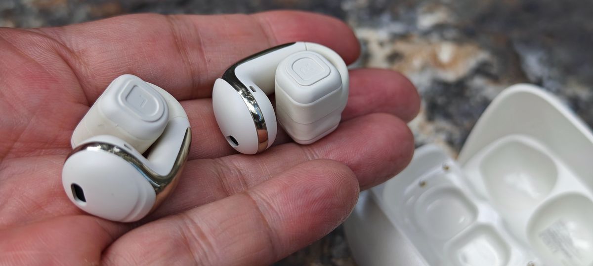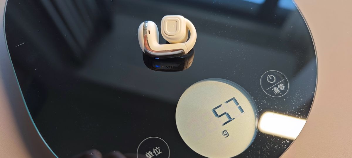 耳机连充电仓在内,总重量只有38.5克重,单只耳机仅 5.7g 的重量,相当于一张 A4 纸的重量,搭配亲肤记忆硅胶材质,戴上瞬间几乎感受不到存在。长时间佩戴毫无压力,时间一长,都会忘记它的存在,特殊的U-Look 耳夹设计佩戴非常稳固,我连续佩戴5小时工作、10公里夜跑,耳廓既无压痕也无酸胀感,甚至多次下意识摸耳朵确认耳机是否还在。