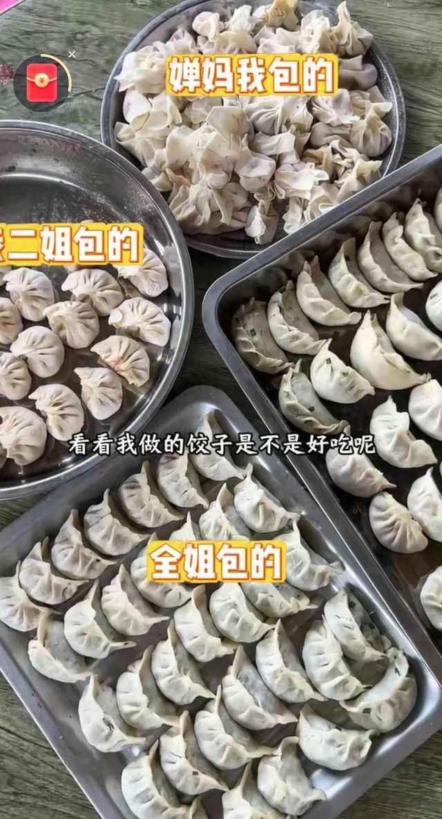 冠军厨房里的团圆时刻,全红婵妈妈晒婵宝包的饺子,婵妈很开心