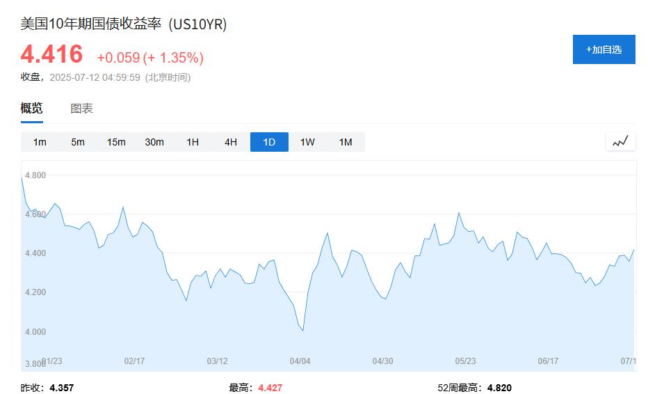 警报又响了,尽管美国的股市在“大而美”减税法案的加持之下创出了历史新高,但是不代表美元霸权体系没有裂痕,美国10年期国债收益率再度逼近4.5%警戒线,华尔街开始用脚投票。