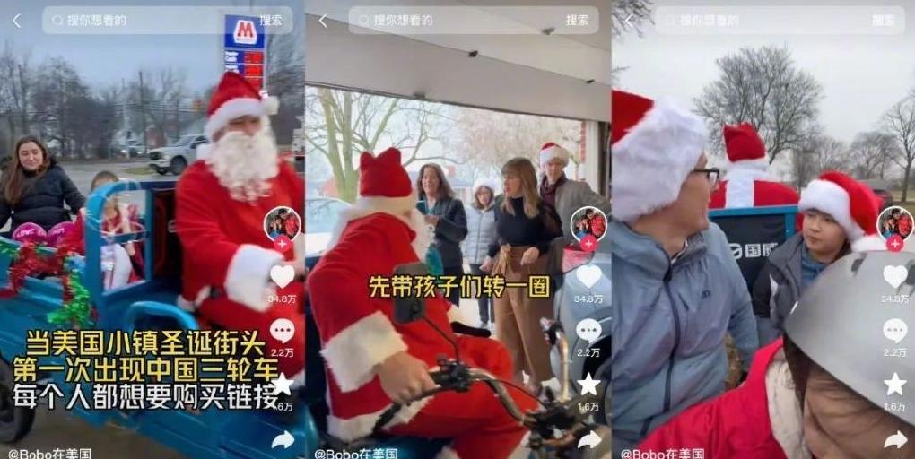2024年的某天,一名美国女子将中国电动三轮车作为圣诞礼物送给了她的公公。