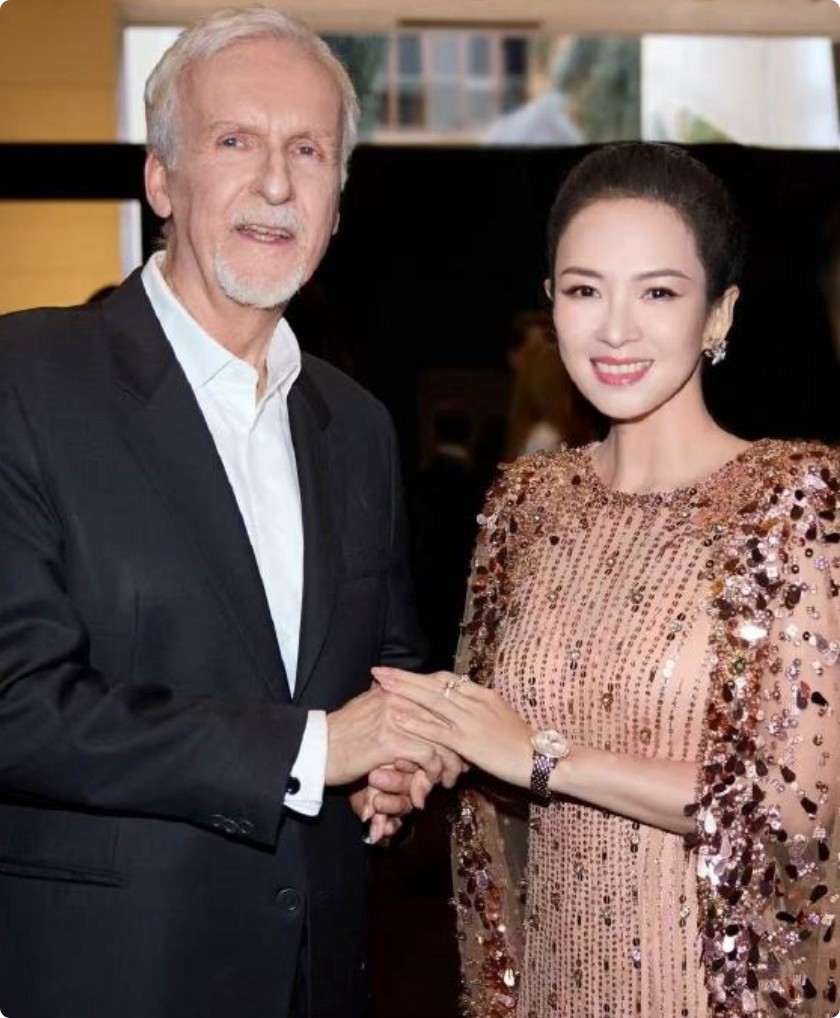 当卡梅隆登台与中国嘉宾握手时,章子怡的反应格外引人注目。