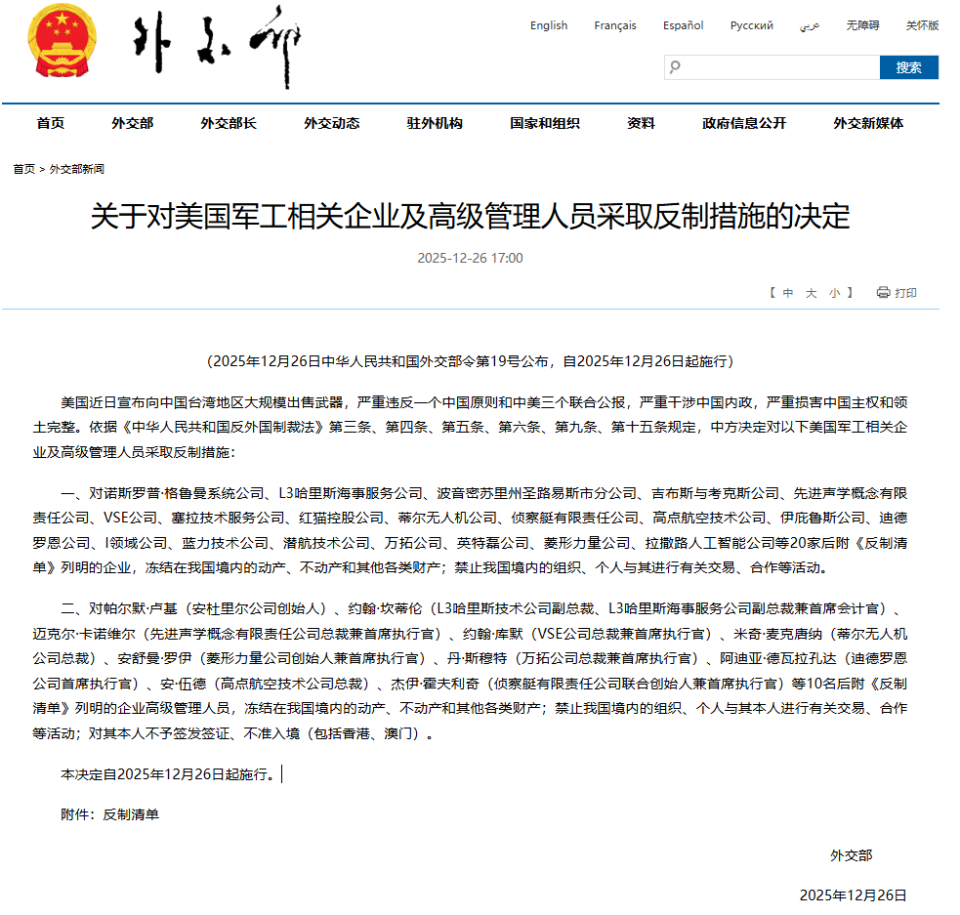 2025年的最后几天,中国没有把反击留到2026年。账,要当年算;刀,要当年亮。