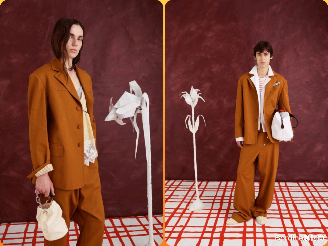 在这些红色的高级优雅中,纯色的简约结合了面料纹理的材质质感,以撞色花纹、休闲廓形等设计也多了一些日常的随性大方。