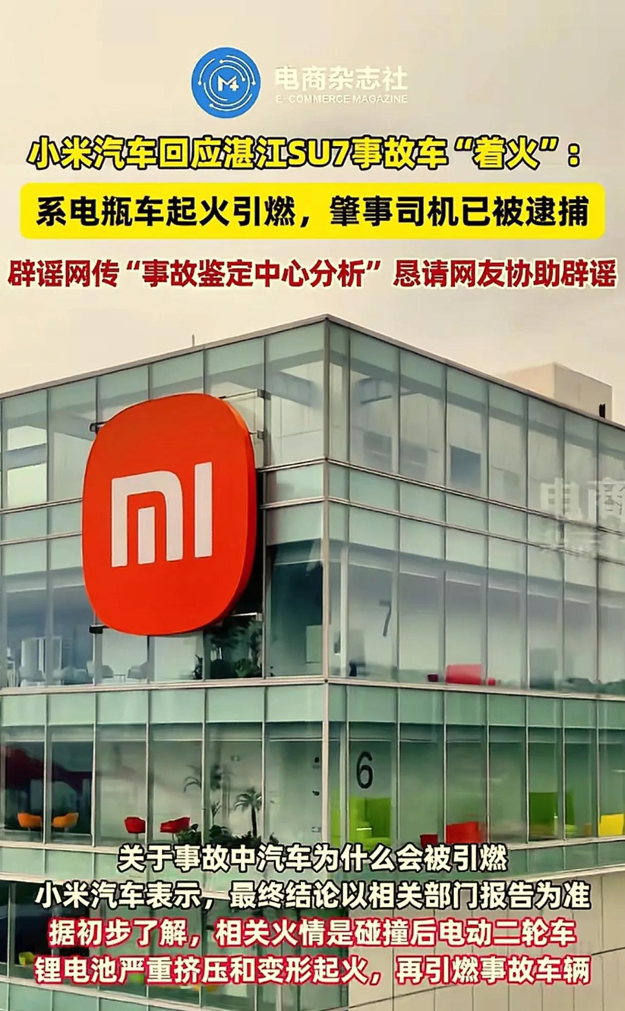 短短八天后的4月5日,第二起惨剧在湛江上演。一辆小米SU7与一辆两轮电动车相撞,电动车上的两人当场死亡,小米SU7随即起火燃烧。这次事故更让人感到不安的是,碰撞的力度并不算大,为何会造成如此严重的燃烧后果? 事后,小米汽车声称是电动车先起火,随后引燃了小米SU7。但这说法却难以服众,很多网友质疑小米SU7的防火性能和电池安全问题。