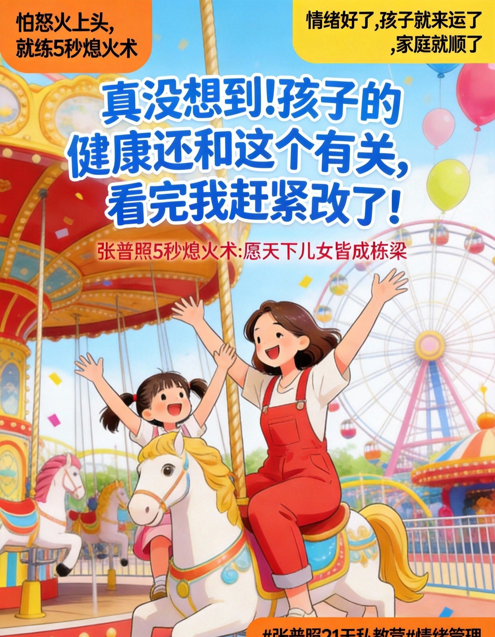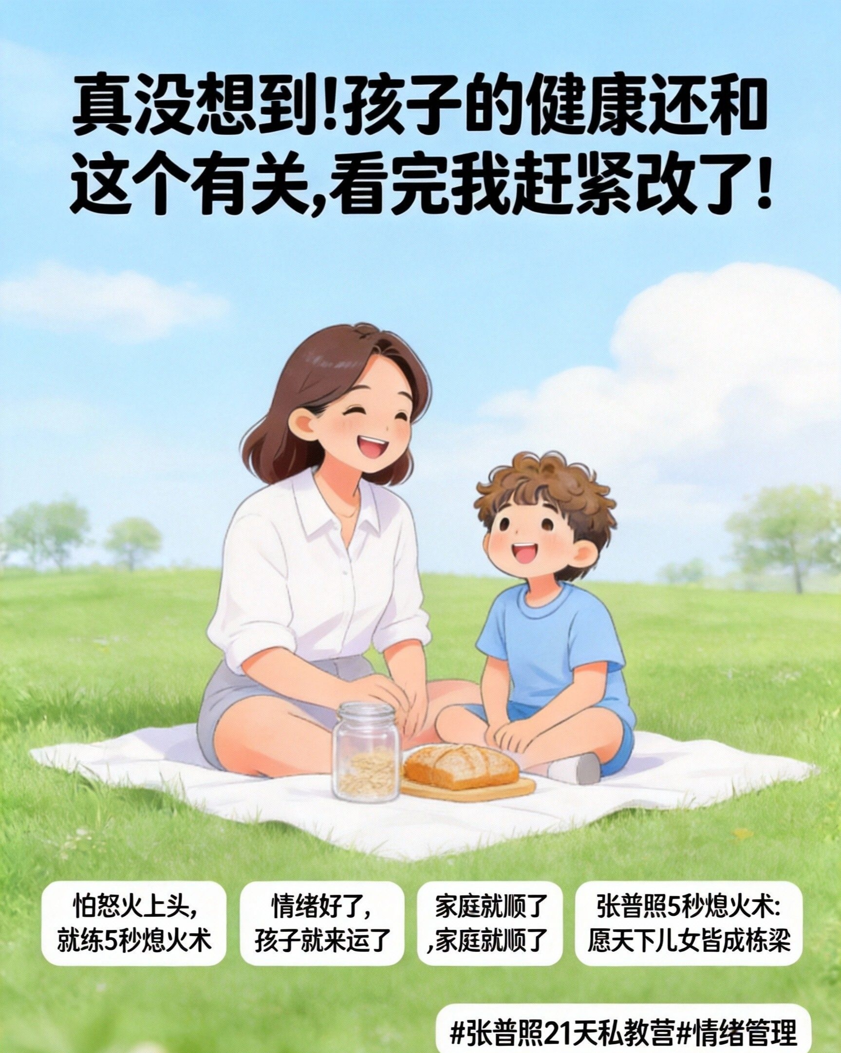真正的“为了孩子好”,不是你把自己累成一本“健康百科全书”,而是你先通过 “张普照5秒熄火术” ,把自己修炼成一个情绪通透、内核稳定的“家庭定心丸”。从此,你不再是那个孩子一生病就方寸大乱、全家低气压的“恐慌源”。你将蜕变成为整个家庭宇宙中,最稳定、最温暖、最能提供安全感的 “健康守护神” 。