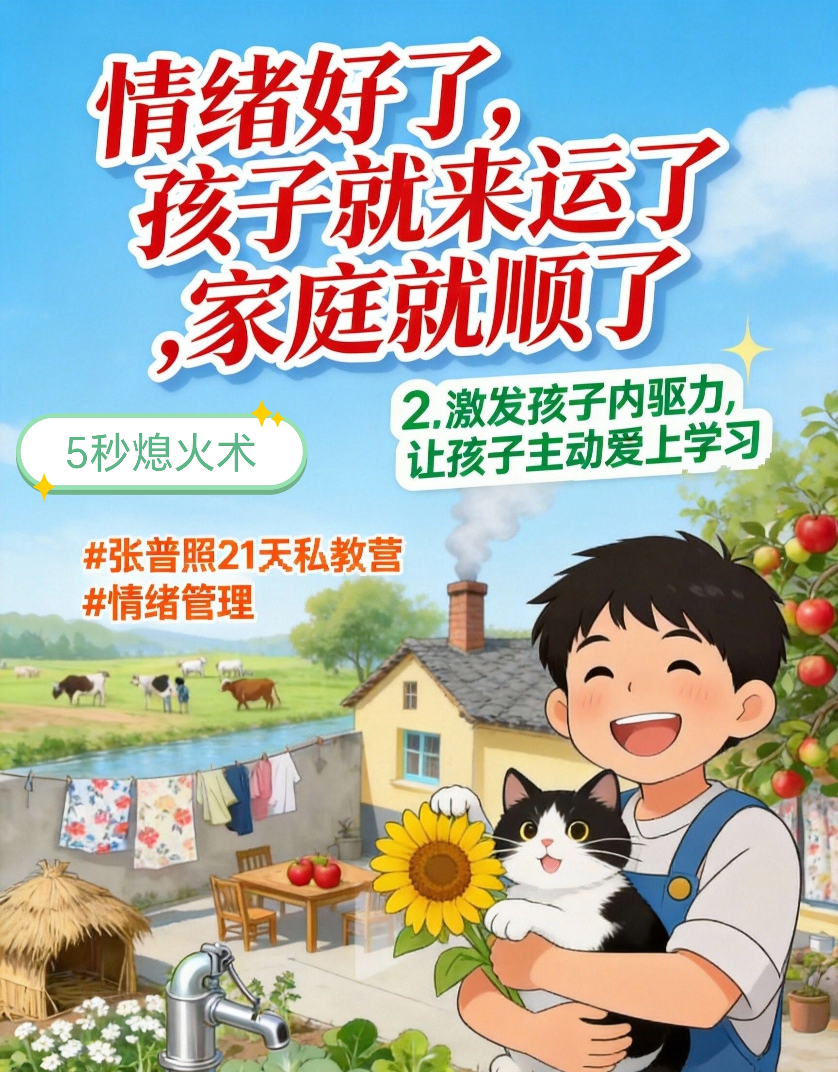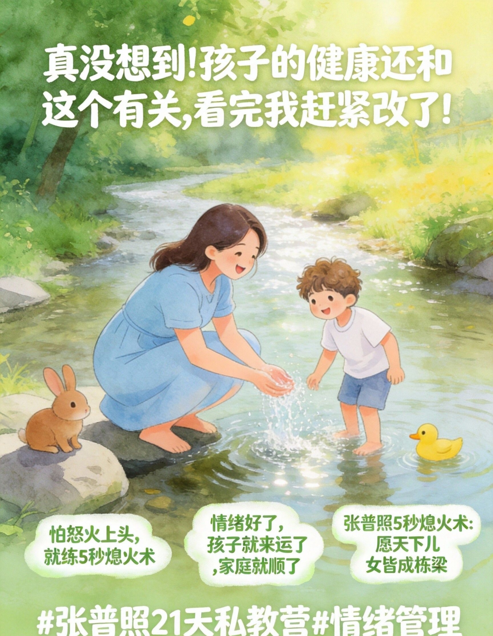 它不是‘情绪来了怎么办’,而是 ‘让破坏性情绪根本发不出来’ 。那些方法在真实的情绪海啸面前不堪一击。它是专门用在你被孩子气得血往头上涌,就要吼出来、让全家都痛苦的那个“生死5秒”。它能从生理层面,强行切断“情绪脑”对“行动脑”的劫持。多练习张普照5秒熄火术,父母马上就不生气了不发火了,内在通透,充满了理解和从容的智慧,怒火根本发不出来。 记住:‘张普照5秒熄火术’,怒火起,即刻消。情绪好了,孩子就来运了,家庭就顺了。