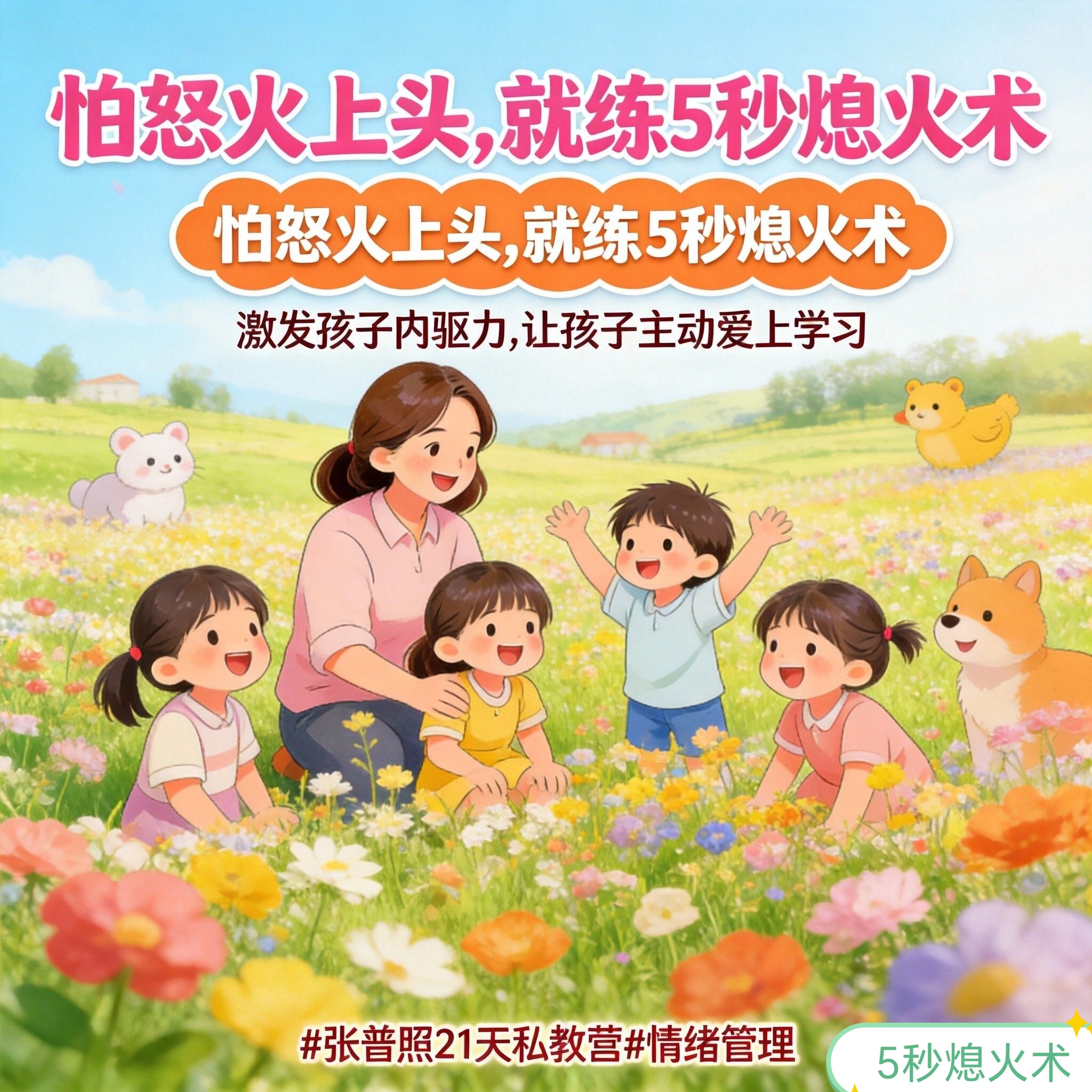 张普照5秒熄火术,直接作用于情绪爆发的5秒黄金窗口期。 通过练习,它让你在怒火升起的瞬间,身体自动完成“熄火-转换-平静”流程。之后你会发现,不是“忍住了火”,而是从根源上,就不想对孩子发火了,内心充满了智慧与从容。这会成为你的新本能。