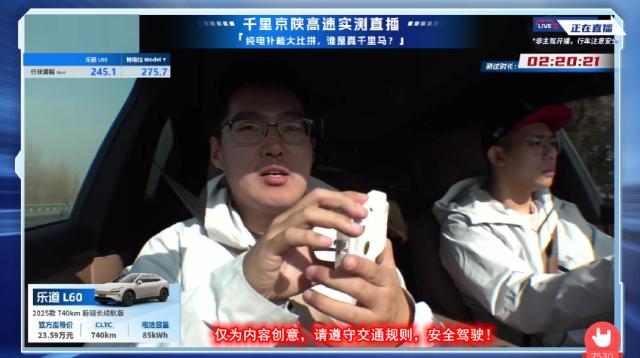 当然,在中型纯电SUV领域,特斯拉Model y一直是诸多年轻人的心仪座驾,依靠长续航、低能耗、强动力等优势,赢得名列前茅的销量。然而,就在2月5日,某知名权威平台为了模拟电车春运出行实况,针对特斯拉Model y和乐道L60两款车型,开展了北京-西安1000km的高速直播实测,看看谁的补能效率更高?谁的用时更短?谁才是真正的“千里马”?