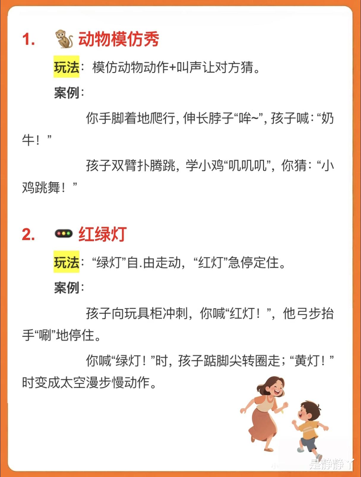 吃完早餐的客厅可以秒变红绿灯游戏场。你站在沙发这边当“交警”,孩子从玩具柜那边出发。喊“绿灯”时,他可以张开双臂像小飞机一样冲过来;喊“红灯”时,他必须立刻定住像座雕塑。上周我带侄子玩这个,他扮成霸王龙冲过来时,尾巴扫倒了茶几上的水杯,我们俩看着满地的水珠笑作一团,最后干脆改成“黄灯”时学企鹅走路,摇摇摆摆的样子连路过的邻居都忍不住探头看。