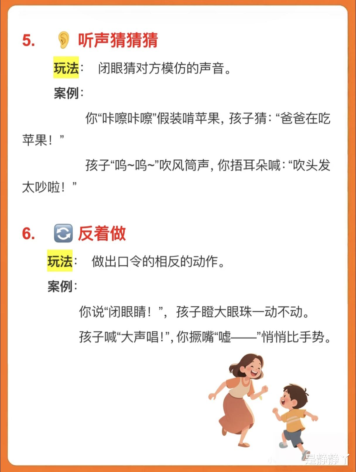 反着做游戏简直是家庭版的“大脑体操”。你喊“闭眼睛”,他偏要瞪大眼睛;你让他“大声唱”,他却捂着嘴做口型。有次我教小侄子玩这个,喊着“摸鼻子”时,他突然指着自己的脚丫,我们俩笑得东倒西歪。这种看似简单的互动,其实在悄悄锻炼孩子的专注力和反应速度,比任何益智玩具都有效。