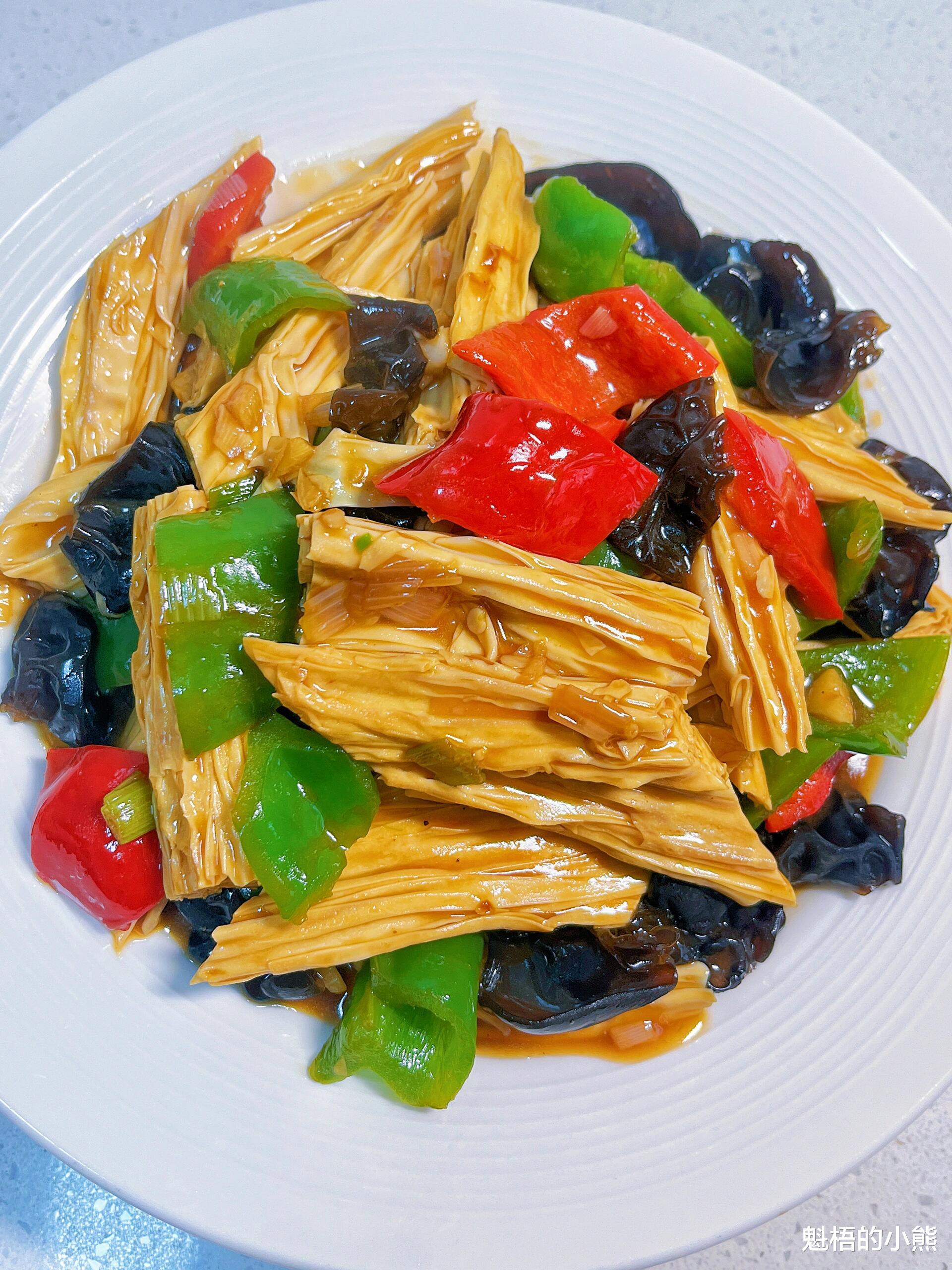 腐竹这种食材,最迷人的地方就是它那海绵一样的质地。泡软之后,它能吸饱任何汤汁,咬下去汁水在嘴里爆开,比肉还要满足。今天这道红烧腐竹,搭配木耳和青红椒,每一块腐竹都裹满了浓稠的酱汁,鲜香味美,滑嫩入味。端上桌,全家人都抢着吃,米饭又要遭殃了。