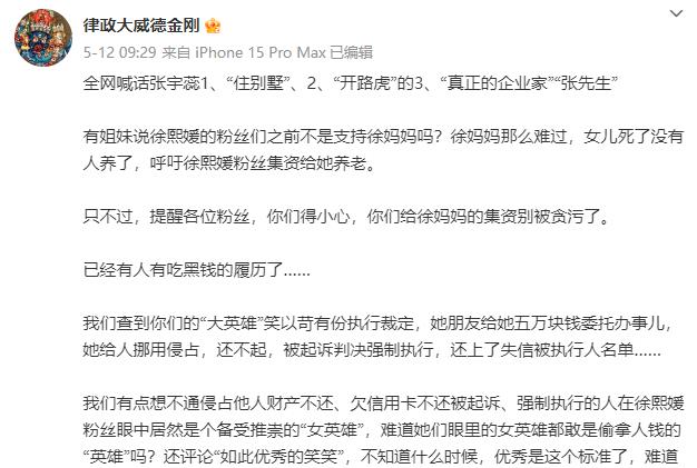 张兰这边通过律师撂下狠话,要把造谣和转移遗产的人“一锅端”。