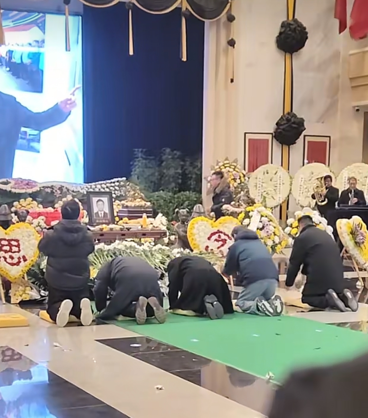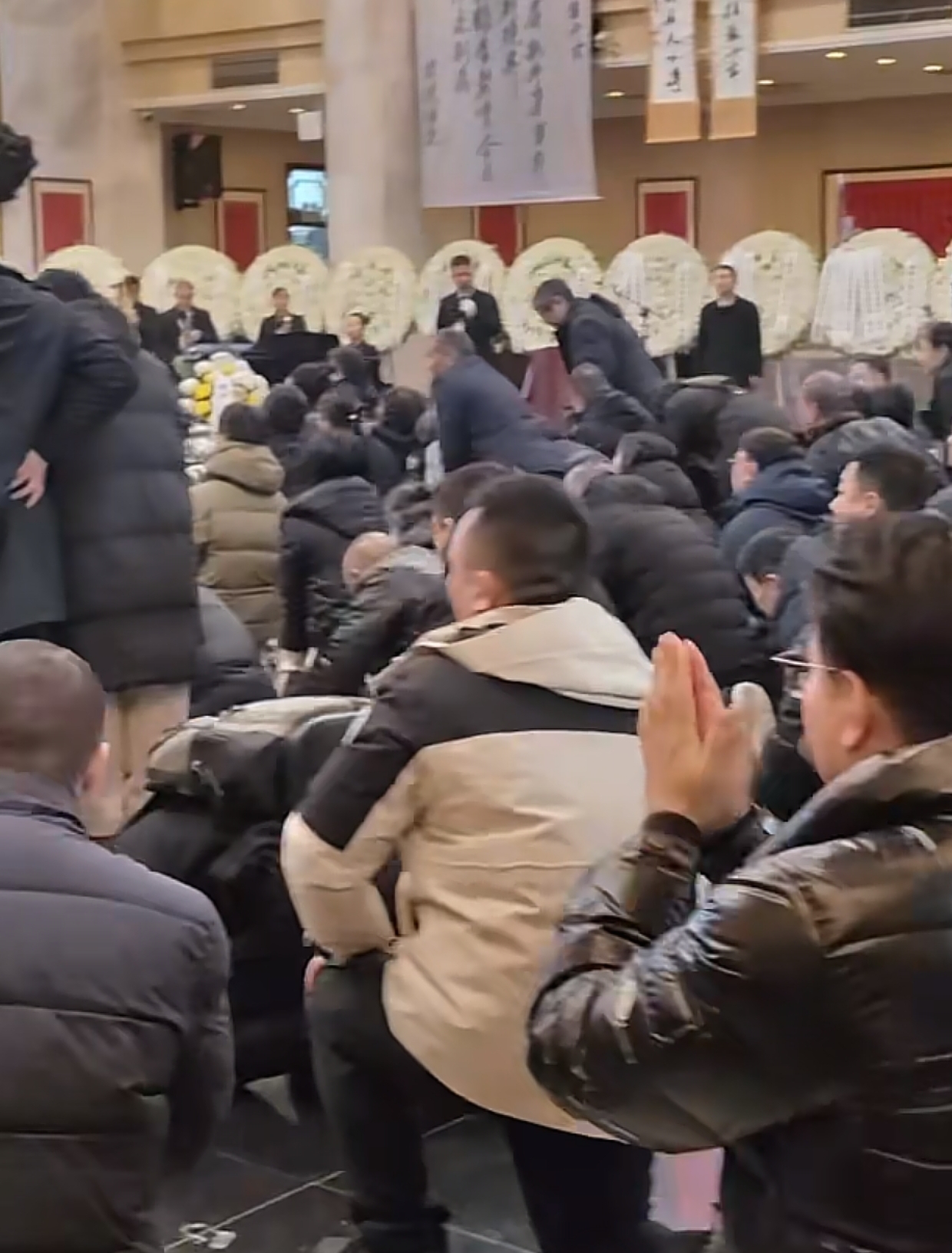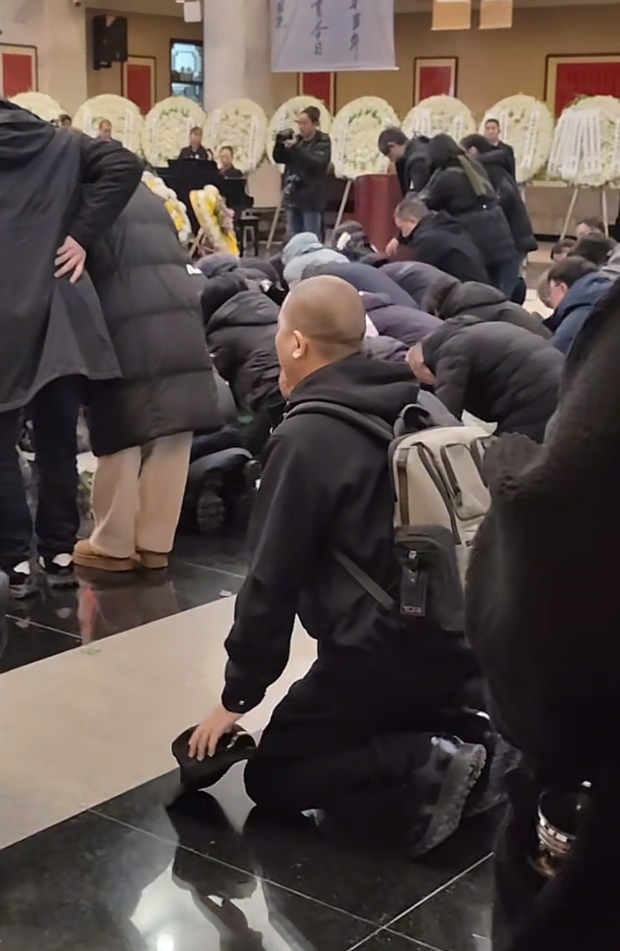 汪涵、李维嘉、吴昕等芒果名嘴低调现身致哀,上百名亲友与业内人士自发跪地磕头送别,场面肃穆又震撼。